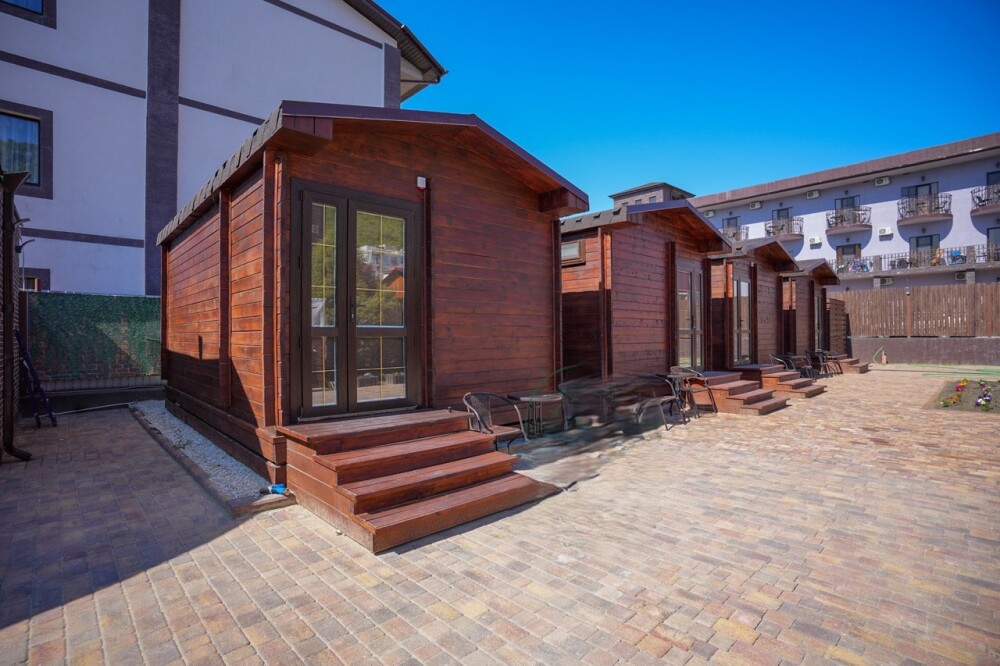 - у каждого домика оборудованная своя зона отдыха (стулья, стол).