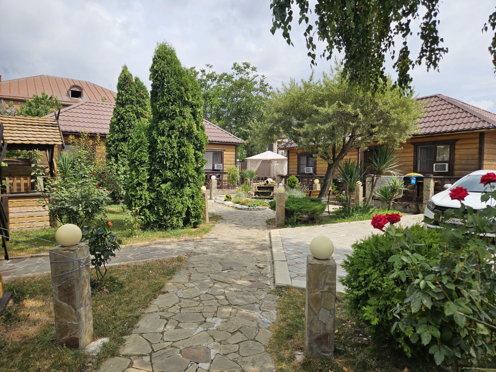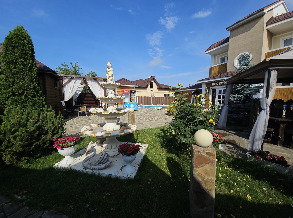 На территории нашего гостевого дома, для удобства наших постояльцев, мы оборудовали места для отдыха с беседками и комплектами парковой мебели, а наш просторный весь утопающий в зелени и цветах двор, и наш каркасный бассейн не только порадуют Вас, но и спасут от летнего зноя. В номерах и прилегающей к ним территории работает безлимитный Wi-Fi интернет. Любителям шашлычка - мангал и шампуры. А также есть общие кухни со всем необходимым для самостоятельного приготовления пищи. А еще всегда вкусно и недорого покушать Вы можете в нашей столовой (домашняя кухня). За продуктами тоже далеко ходить не надо, все необходимое можно приобрести в нашем магазине включая свежую выпечку. Туристам, прибывшим к нам на отдых на личном автомобиле, предоставляется место на парковке.