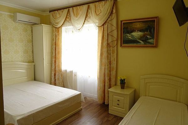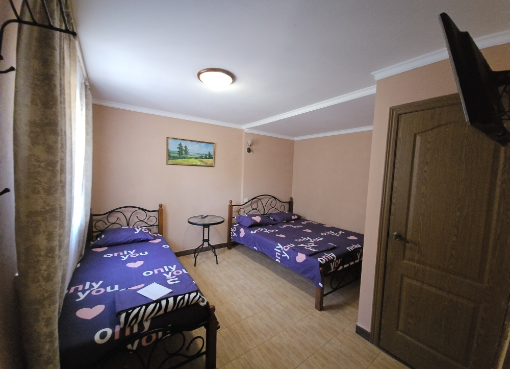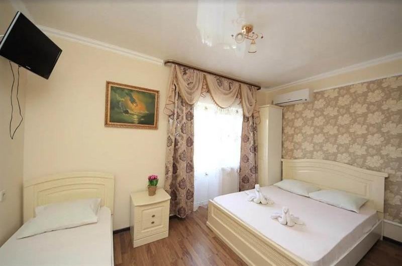 Для размещения отдыхающих наш гостевой дом, всегда рад предложить Вам по-домашнему уютные, просторные 2,3-местные однокомнатные номера со всеми удобствами, категорий «Полулюкс». Наши номера имеют все необходимое для качественного отдыха и комфортного проживания: современная качественная мебель, сплит-система, телевизор, цифровое ТВ, безлимитный Wi-Fi интернет, холодильник, балкон, туалет, душ. Вода холодная, горячая - круглосуточно.