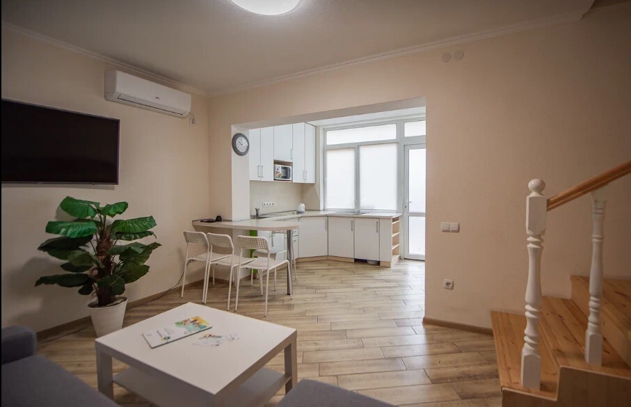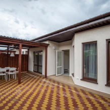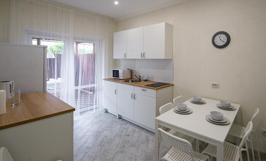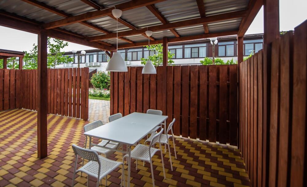 В доме есть все необходимое как для короткого, так и для длительного проживания (посуда, столовые приборы, техника, постельное белье/полотенца и т.д). Проживание доступно круглый год, теплые полы, бойлеры. Каждый дом имеет собственную террасу с обеденной зоной и выходом/входом на кухню.