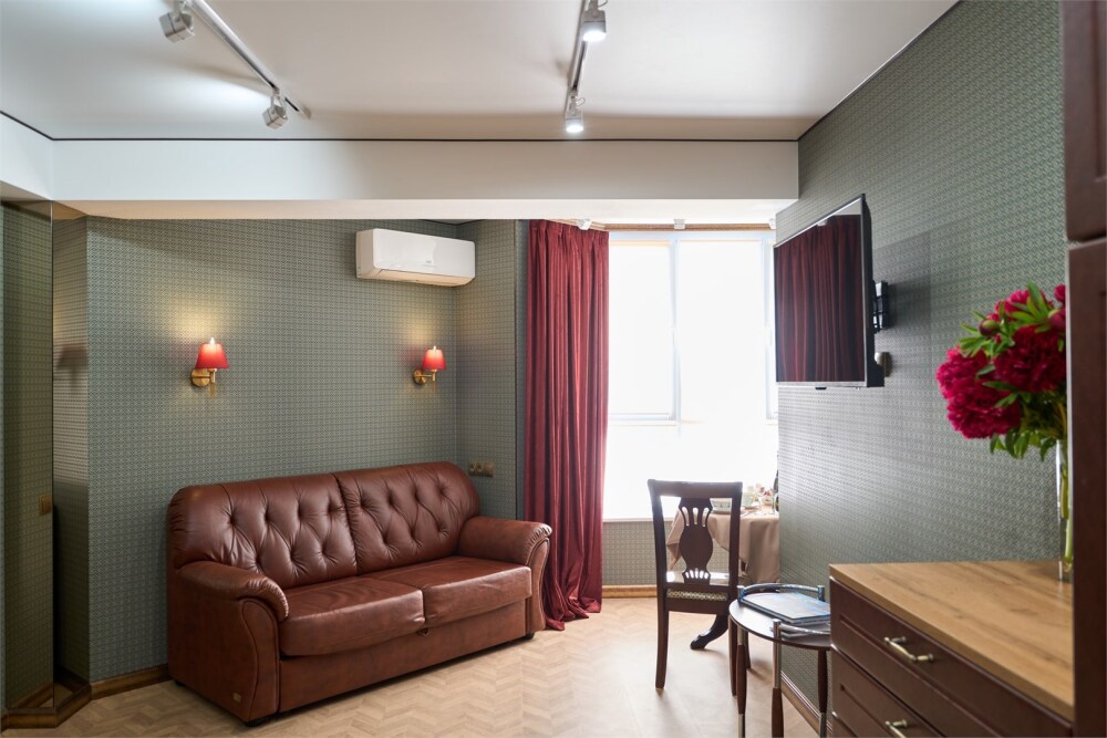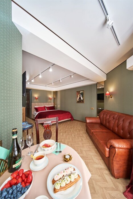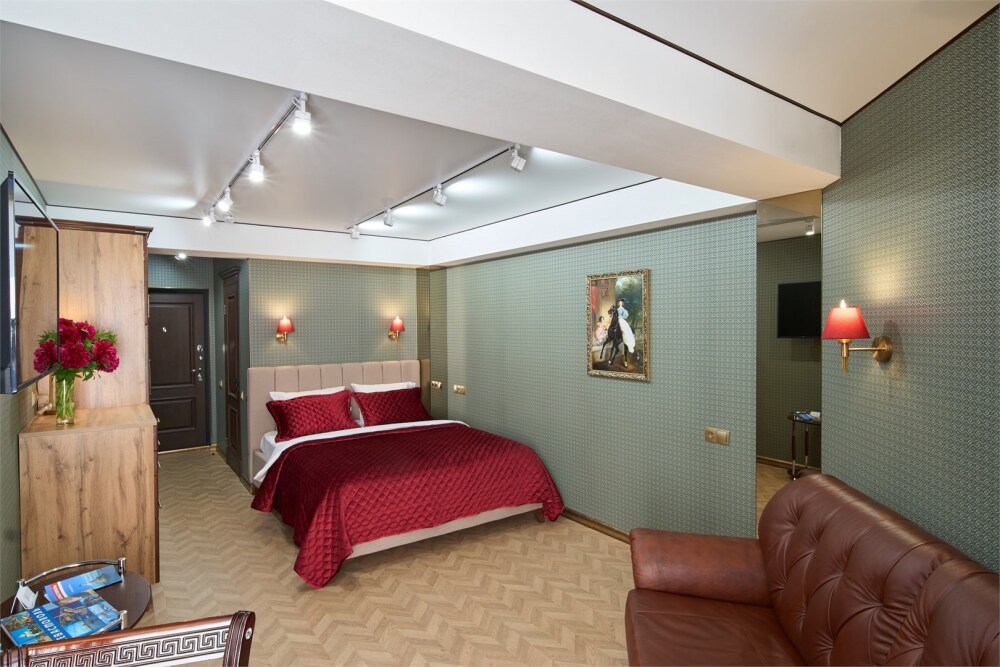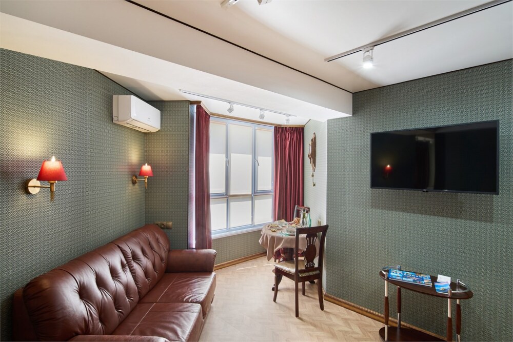 Апартаменты оснащены кроватью «King size», двуспальным раскладным диваном и односпальным раскладным креслом, что делает их идеальным выбором для семьи или небольшой компании.