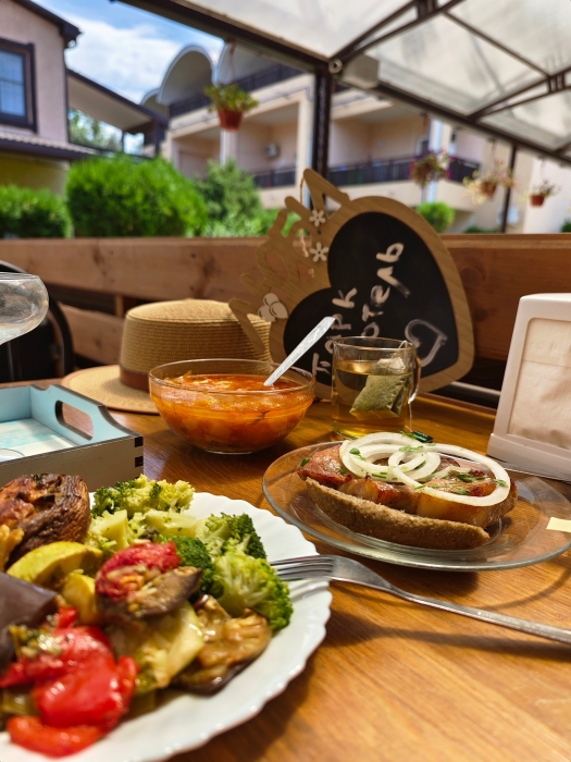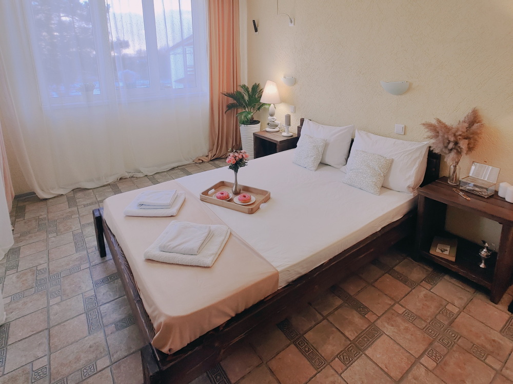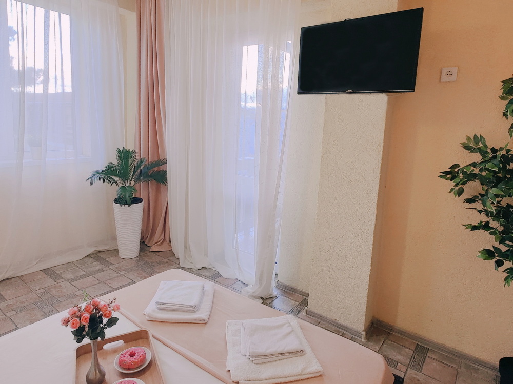 В «Благовещенке» мы стремимся создать идеальные условия для отдыха: в стоимость проживания включено питание по системе «Шведский стол», вы сможете устроить тёплые вечера в кругу близких на специально оборудованной мангальной зоне, воспользоваться просторным бассейном с зоной для детей. Территория отеля утопает в зелени — здесь приятно гулять и набираться сил. Каждый день мы проводим развлекательные мероприятия для гостей всех возрастов. Юные гости могут весело провести время на современной детской площадке и в игровой комнате. Мы предлагаем лёгкий доступ к пляжу — у отеля есть собственный выход к морю. Любители активного отдыха могут арендовать сабборды и испытать яркие ощущения от катания по волнам. Для вашего удобства работают круглосуточная стойка регистрации и парковка.