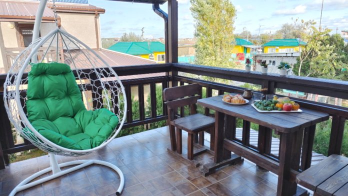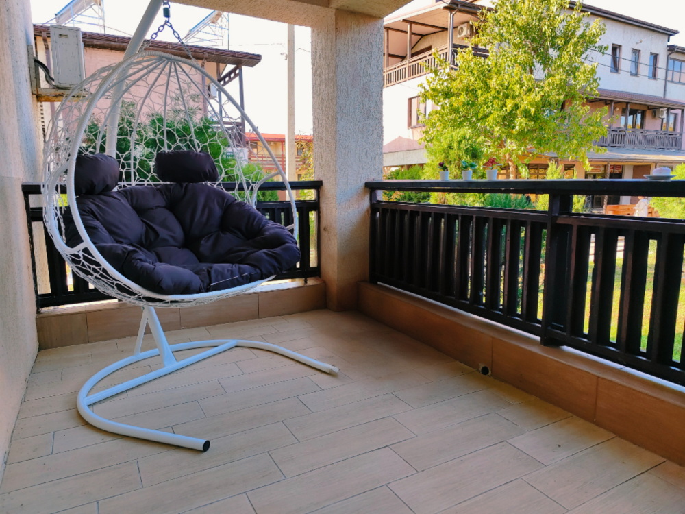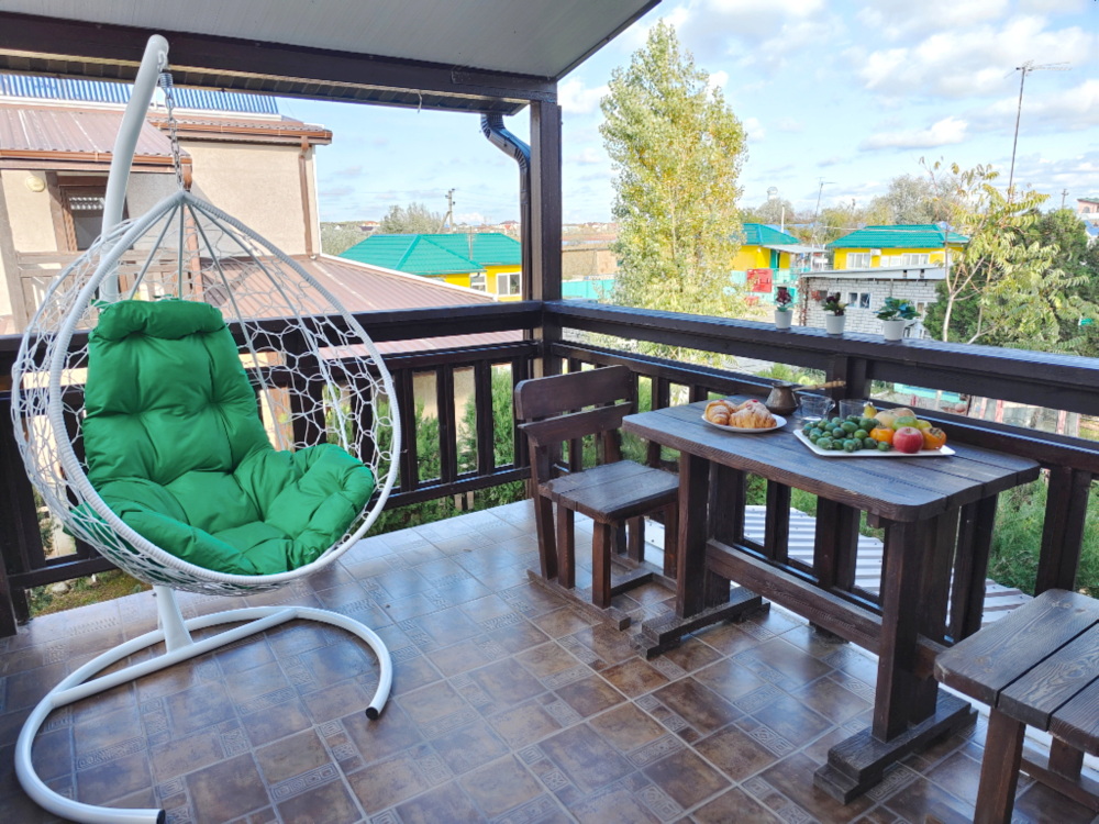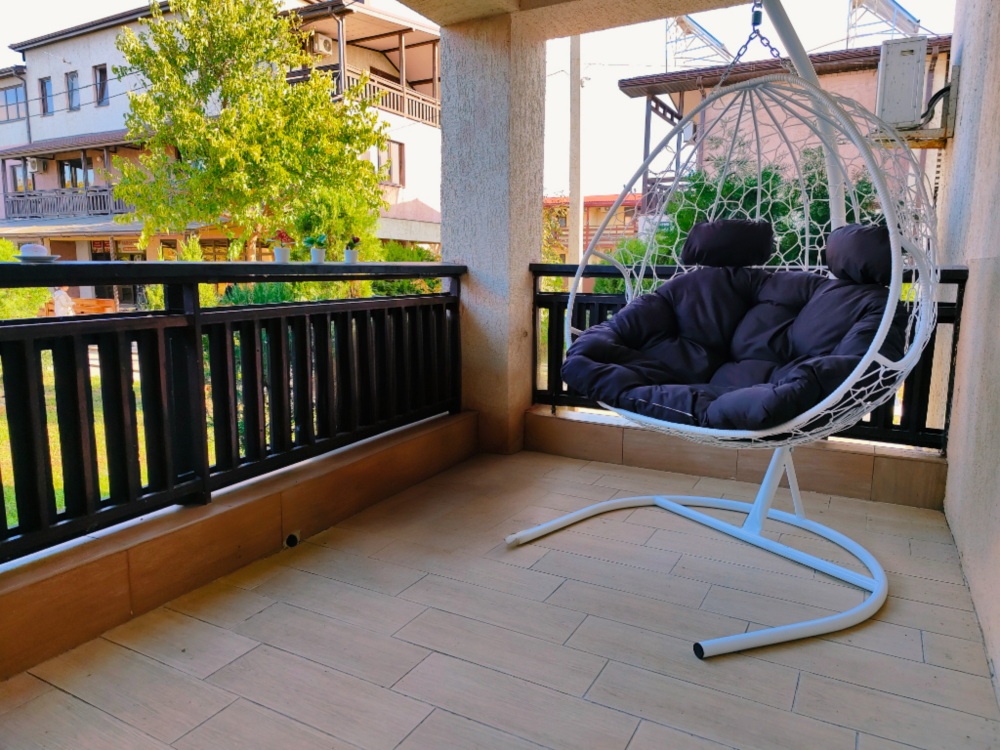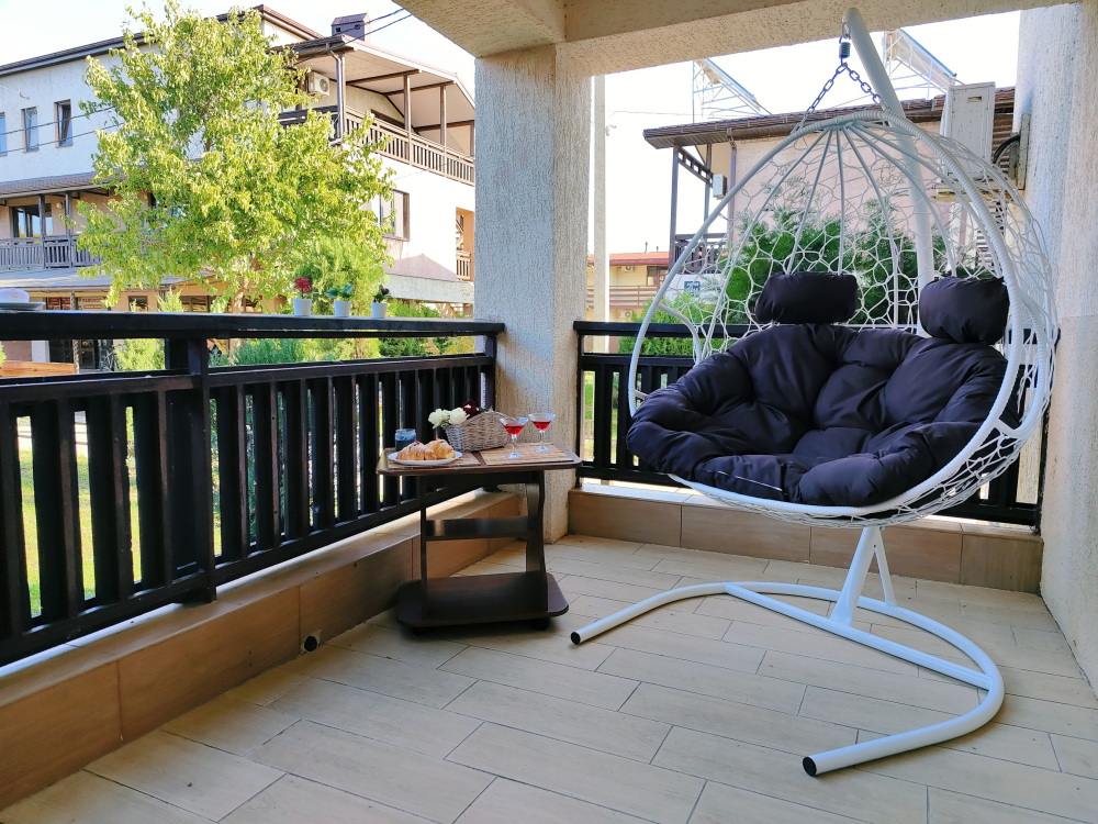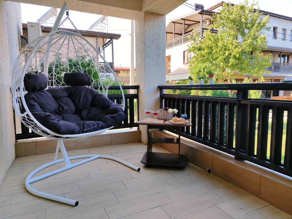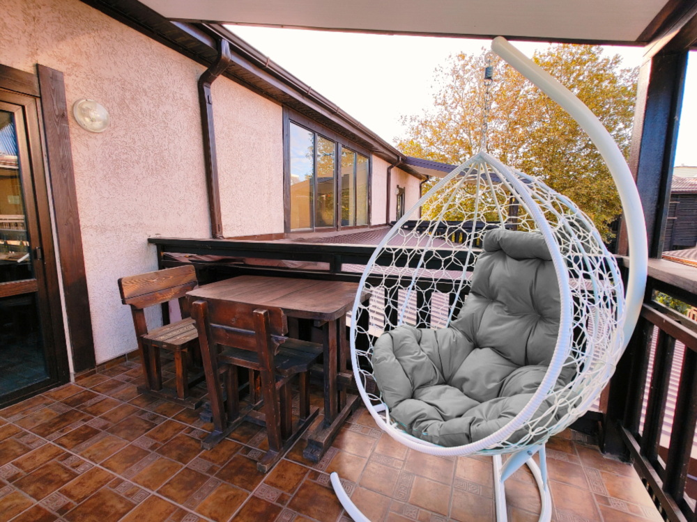 В номере имеется балкон с мебелью для отдыха и кресло-кокон.