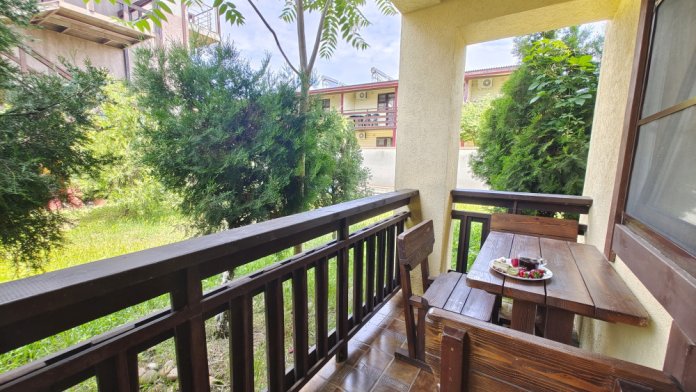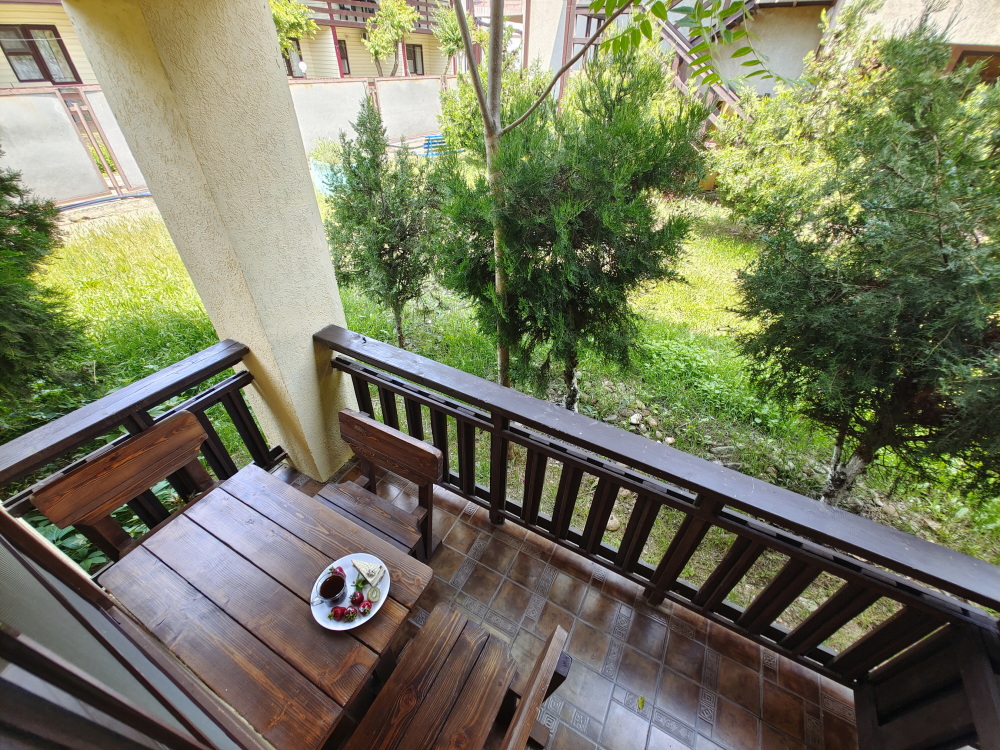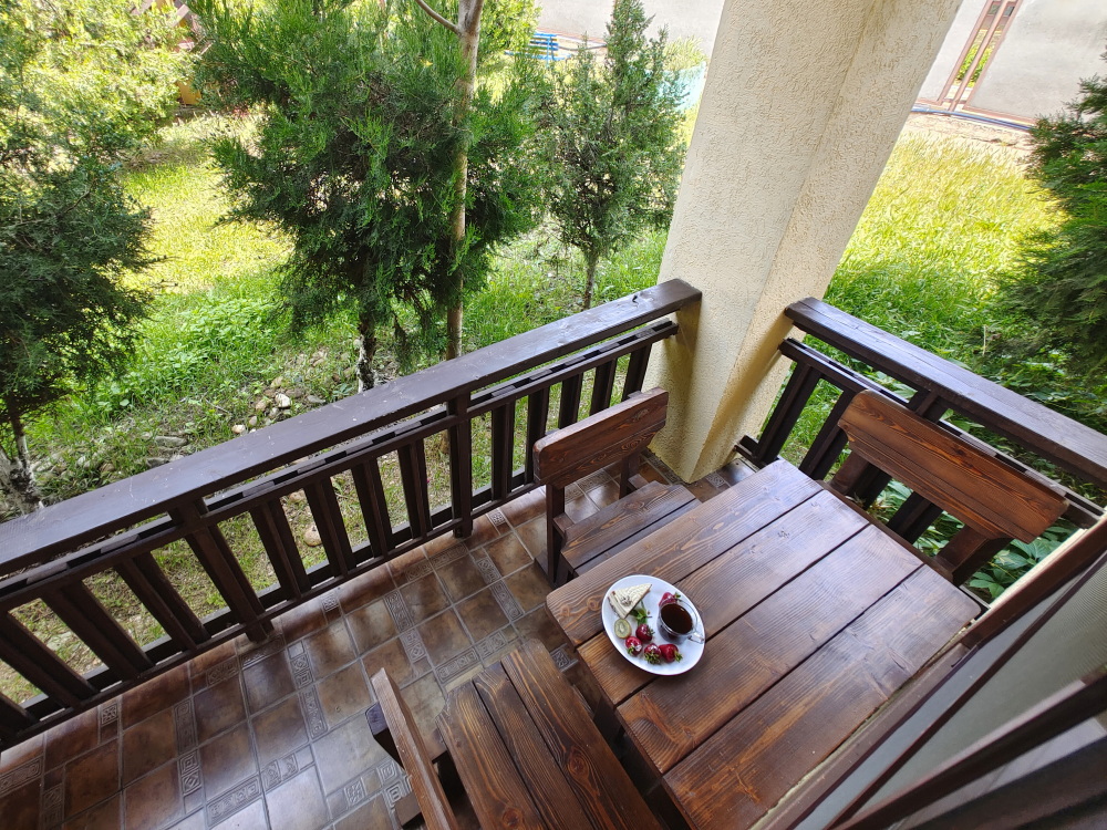 В номере имеется балкон с обеденной зоной и видом на территорию.