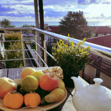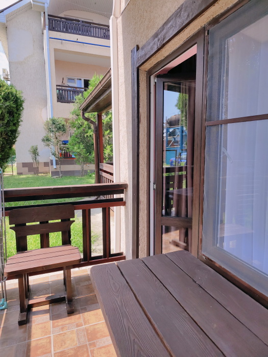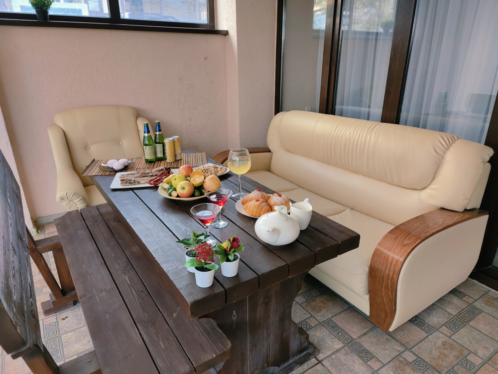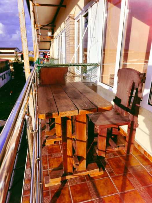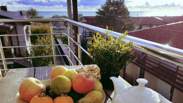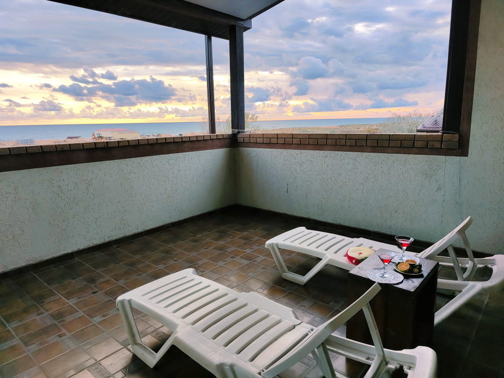 В номере имеется просторная терраса с летней мебель. Панорамный видом на море