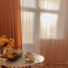 К номеру относится широкая обзорная терраса, оснащенная мебелью для отдыха. Выход на террасу — из общего коридора (не из номера).