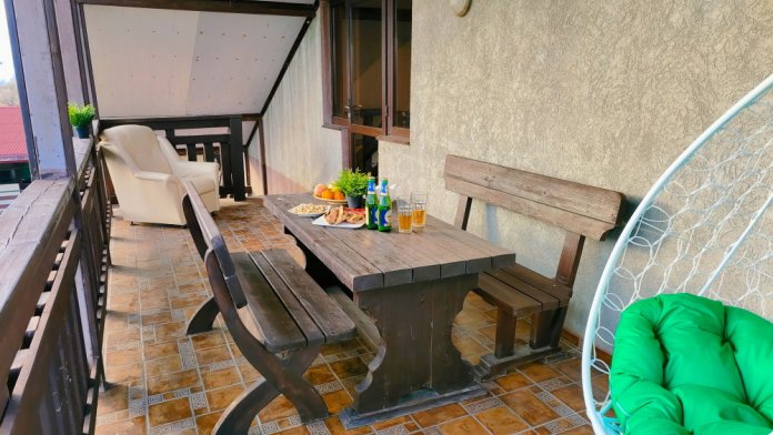 В номере имеется балкон, оснащенный мебелью для отдыха и кресло-кокон.