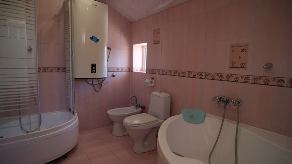 На втором этаже две спальные комнаты и санузел с ванной, биде. В одной спальной комнате две кровати, шкаф. Во второй двухспальная кровать, шкаф. Из комнат выход на общий балкон.