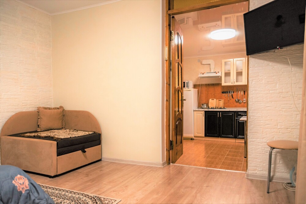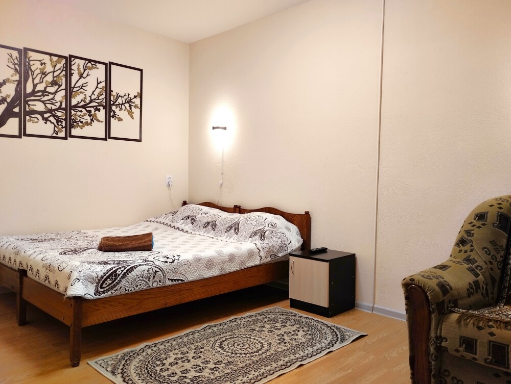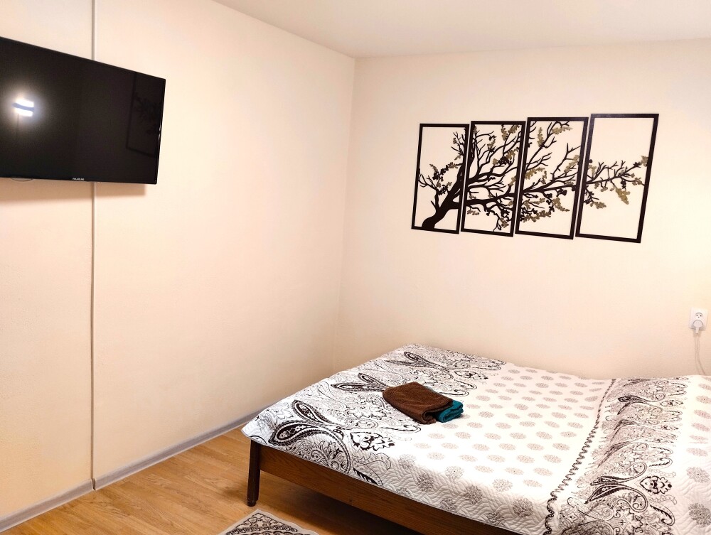В номере все удобства: двухспальная кровать + 2 дополнительных места, шкаф, кабельное TV (плазма), Wi-Fi (бесплатно), кондиционер, утюг, теплый пол (вариант зимнего проживания). Оборудованная всем необходимым кухня. Стиральная машина-автомат. Место для стоянки автомобилей во дворе дома.