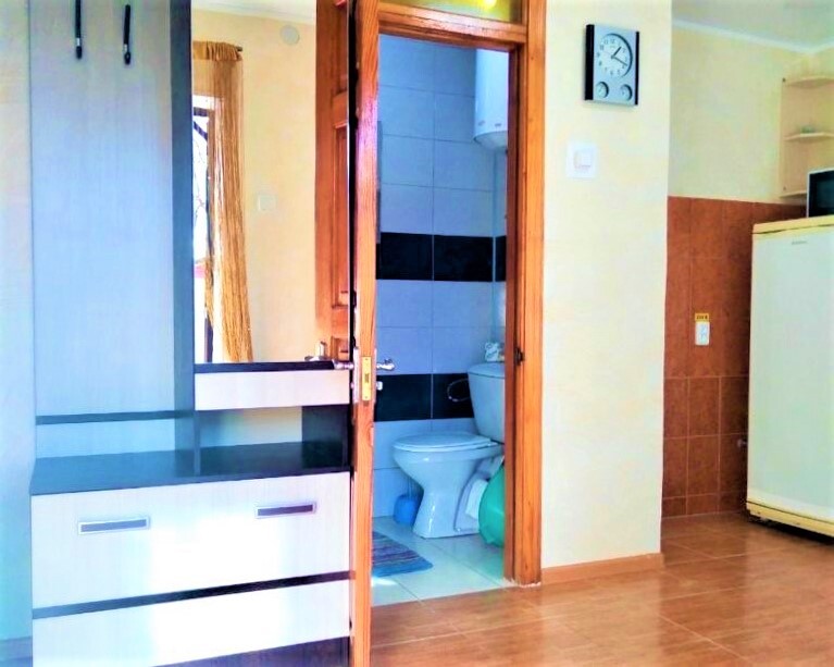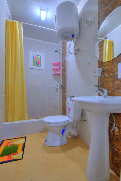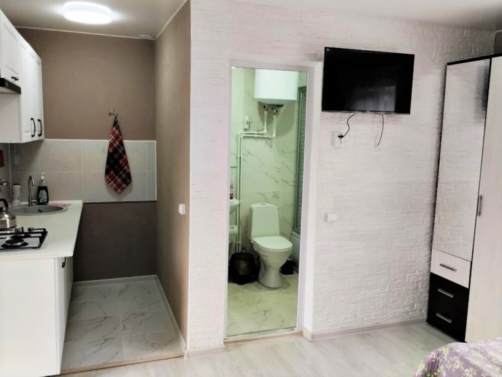 В номере есть все необходимое: кухня, санузел, ТВ, Wi-Fi, кондиционер, холодильник, микроволновая печь. Горячая и холодная вода - постоянно. Стоянка для машин- бесплатно.