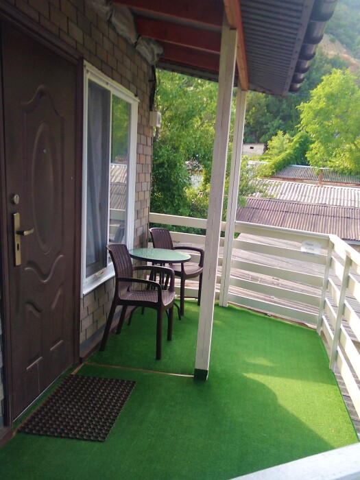 На втором этаже дома сдаются два однокомнатных номера для проживания 2х- 3х человек. Балкон с местом для отдыха, с видом на море, горы. Отдельный вход.