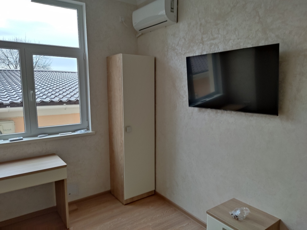 Квартира полностью укомплектована всем необходимым: кондиционер в каждой комнате(в холодное время работает на обогрев), два дивана(спальное место 160*2000), два раскладных кресла (80*2000), шкафы и тумбочки, два плазменных телевизора, интернет.