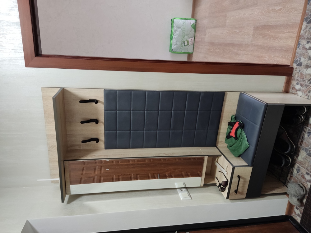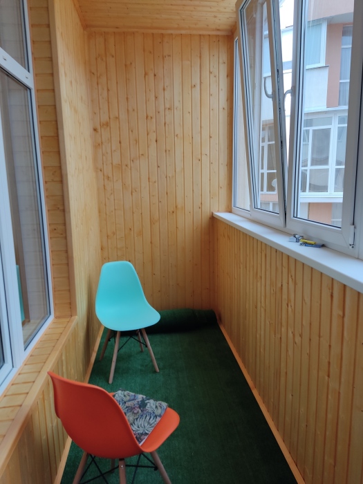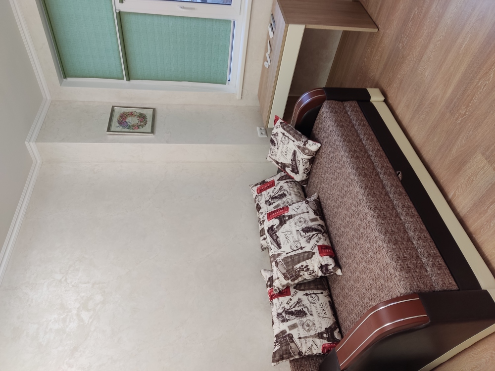 Состоит из двух комнат: спальня, кухня-гостиная, прихожая, совмещенный санузел и застекленный балкон-лоджия.
