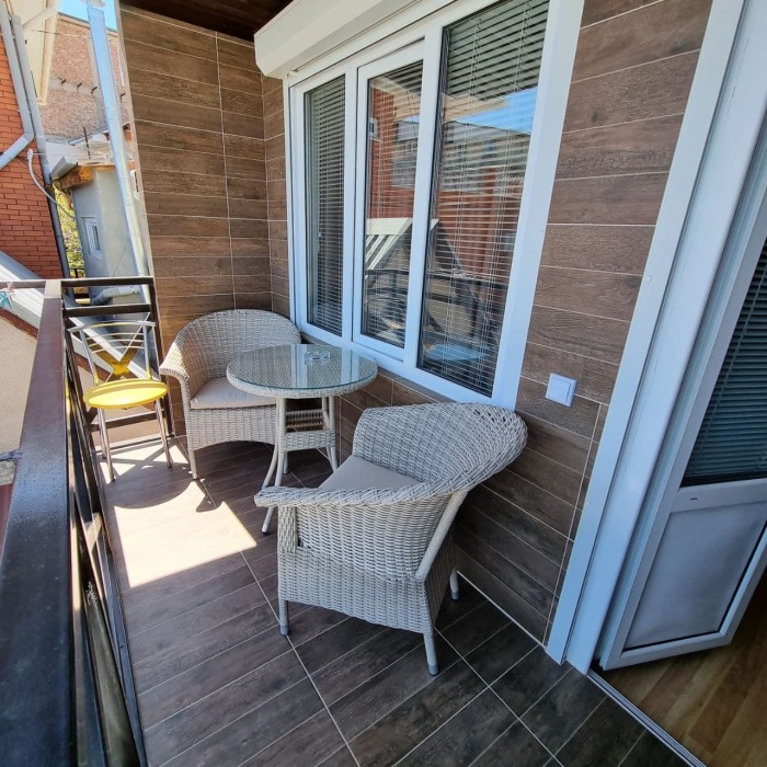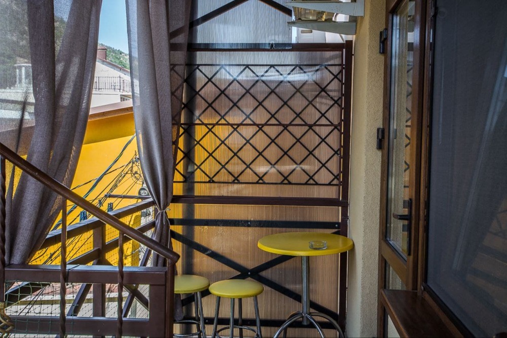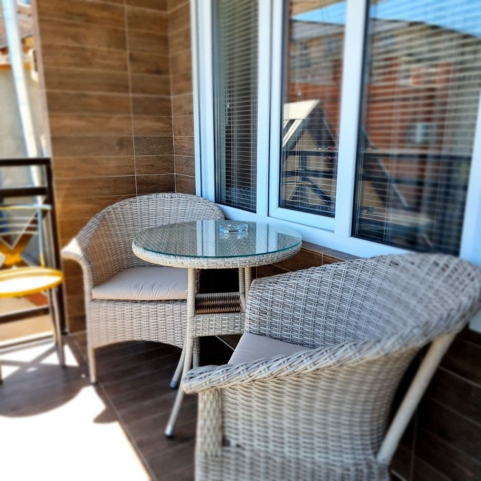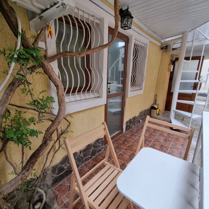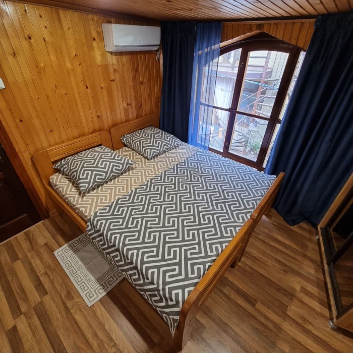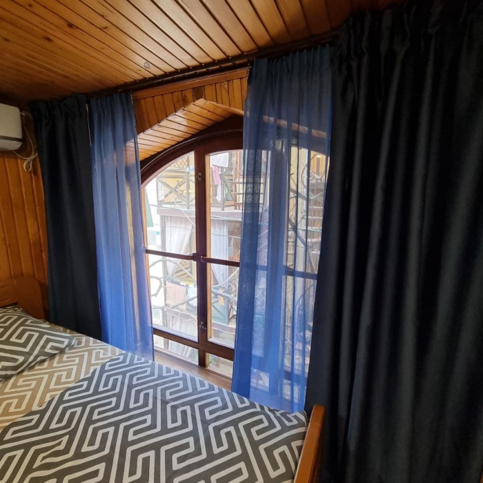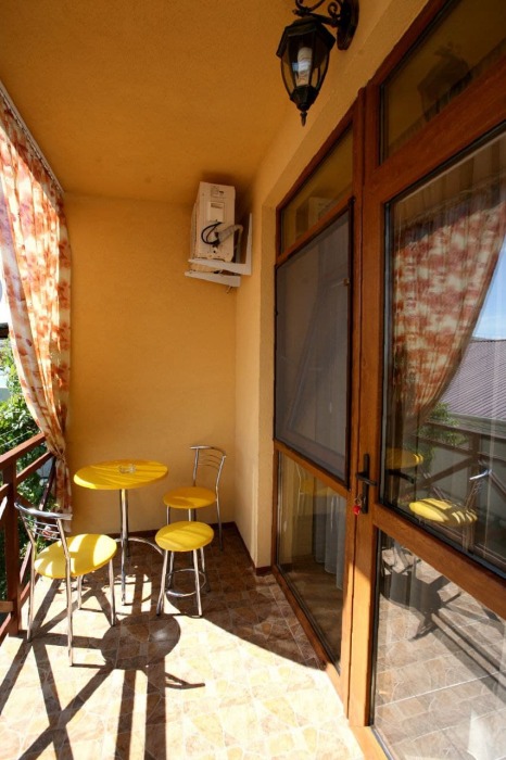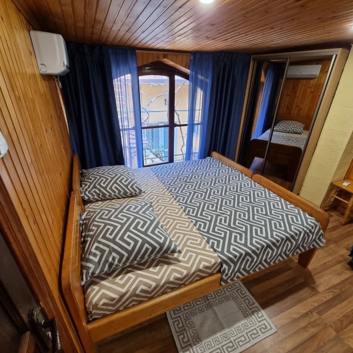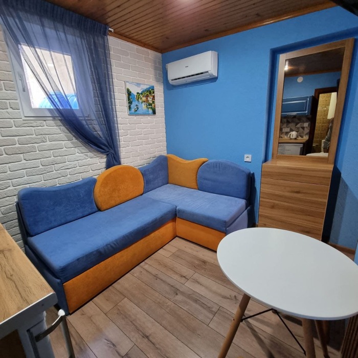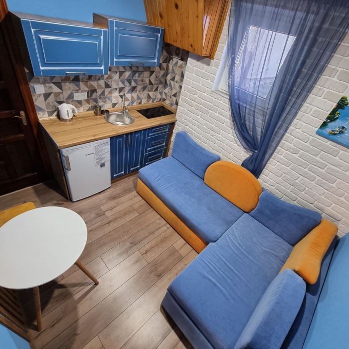 Номер 2/2 - индивидуальный номер со всем необходимым для проживания: комната - студия, кухня, полный набор посуды, холодильник, кондиционер, TV кабельное, Wi-fi, белье, сан узел с душевой (горячая/холодная вода постоянно), полотенца, просторные балконы с видом на тихую улочку без машин.