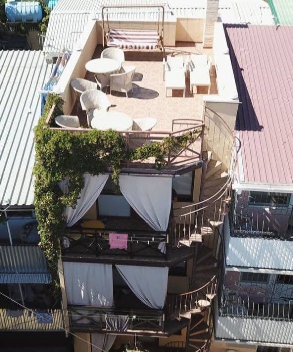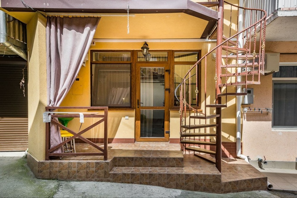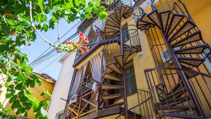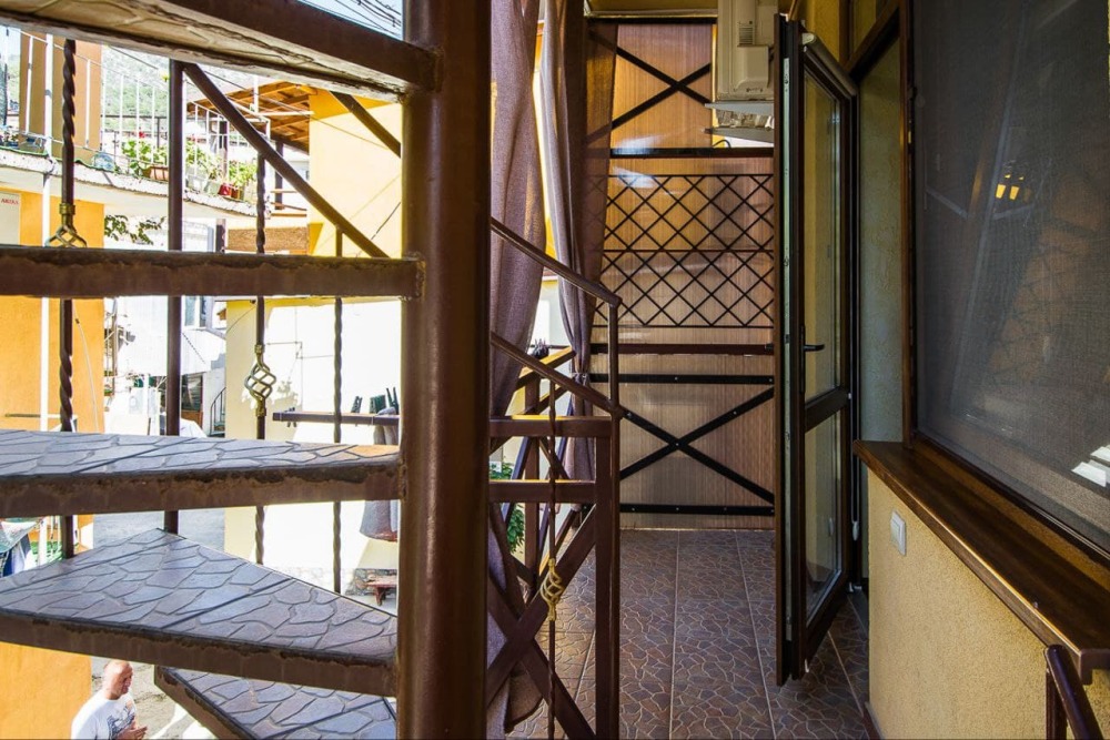 Вход в номер по винтовой лестнице со стороны балкона.