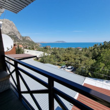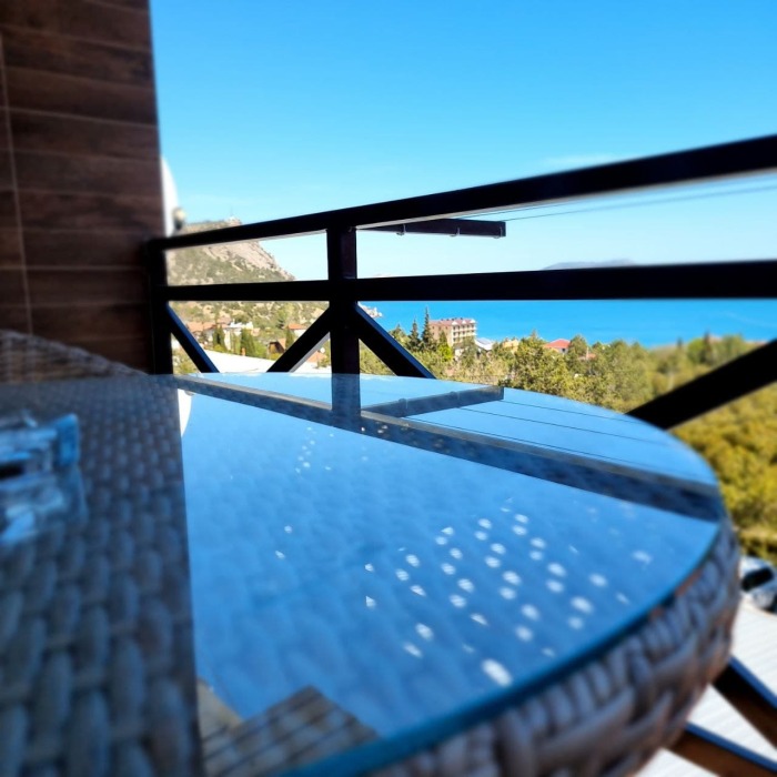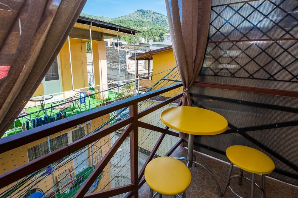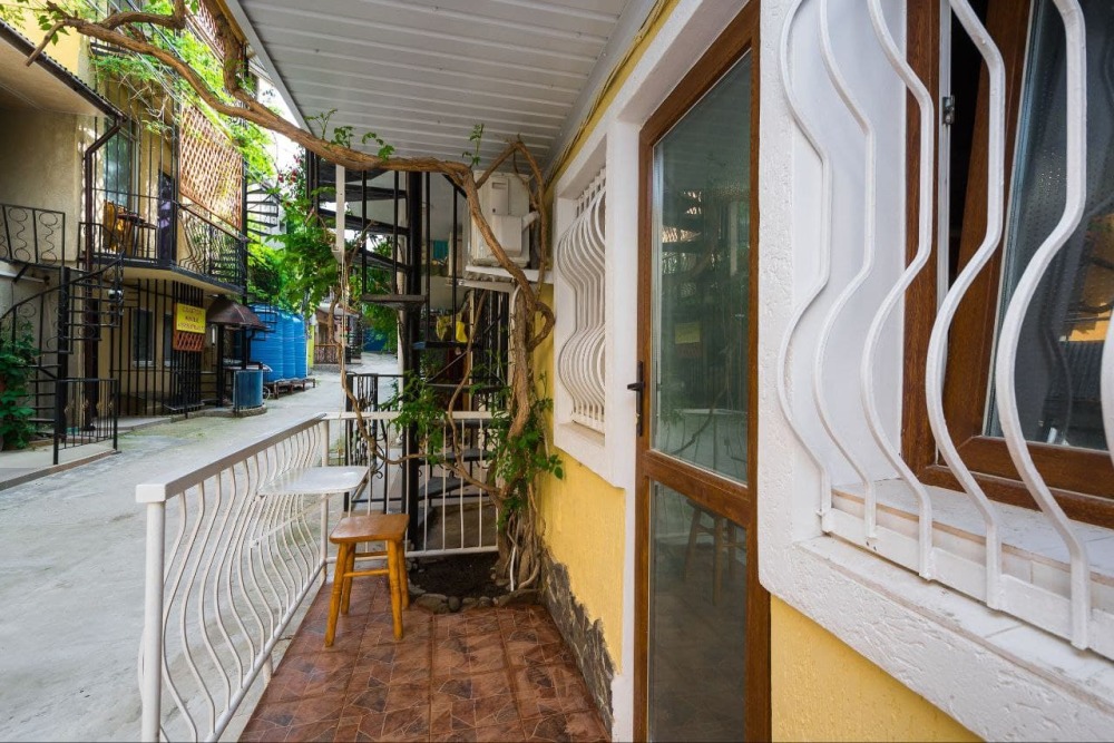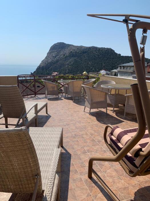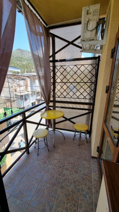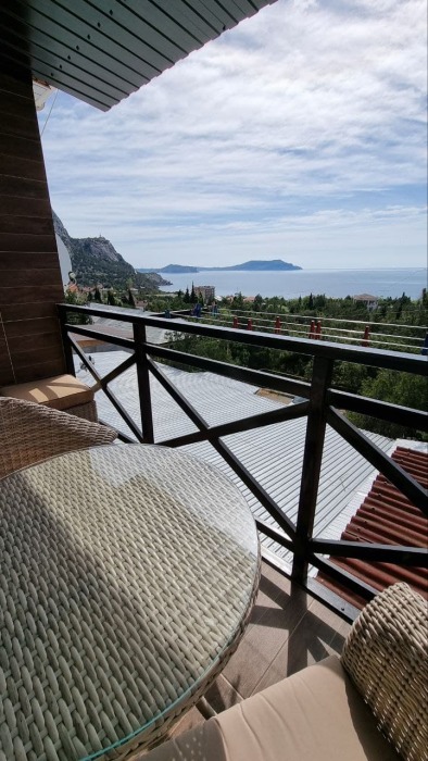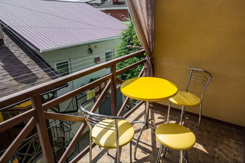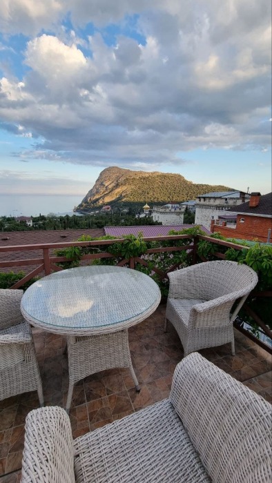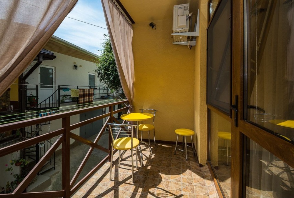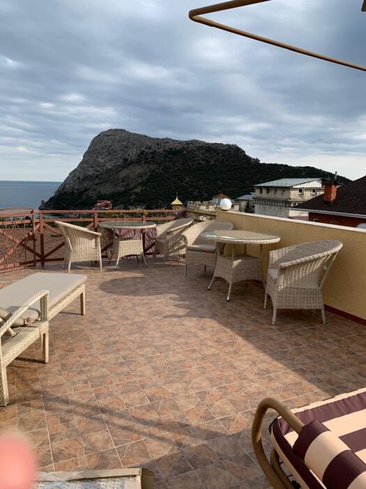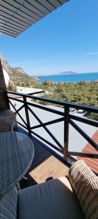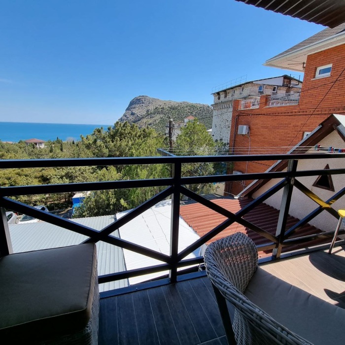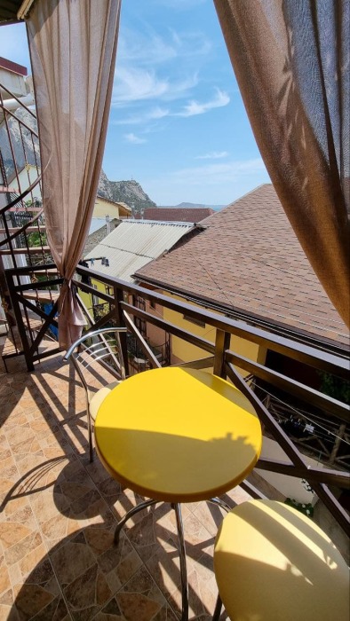 В стоимость номера входит постельное бельё и полотенца по количеству проживающих. Вид с номера - во двор (на тихую улочку без машин). Наша визитная карточка - смотровая площадка: с шезлонгами и видом на море, горы и весь посёлок (общая для наших номеров). До моря - 500 метров, приблизительно 6 минут неспешным шагом. Путь к морю через парковую можжевеловую зону по тенистой аллее с лавками.