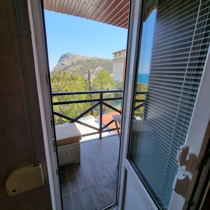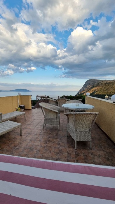 Апартаменты размещают до шести человек. Это 2-этажный номер с видом на море.
