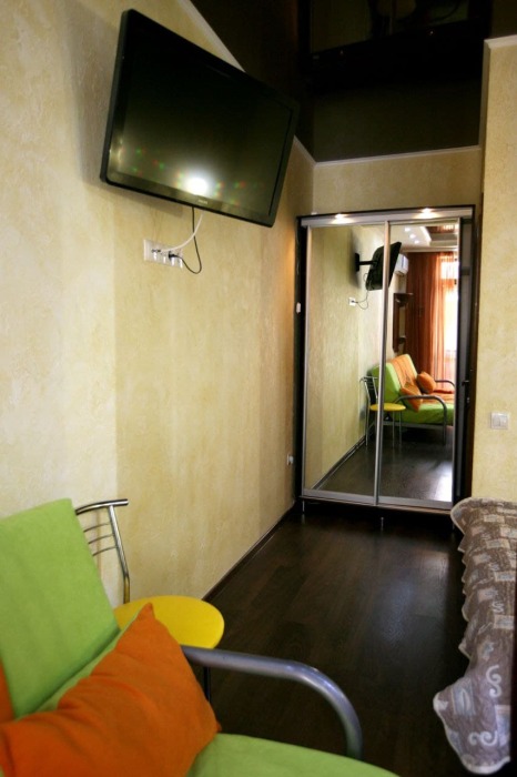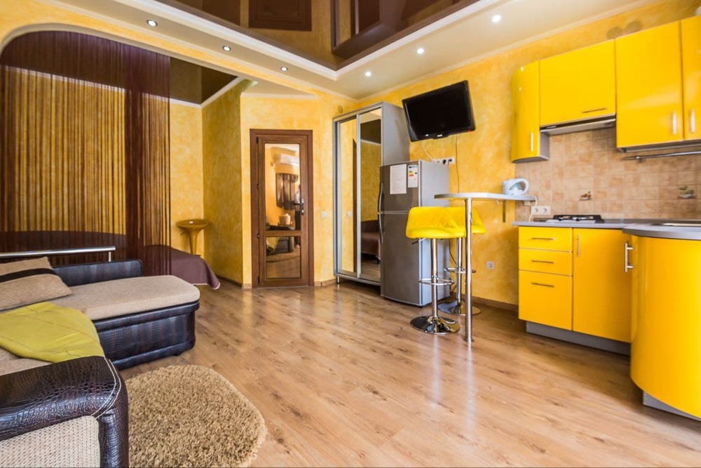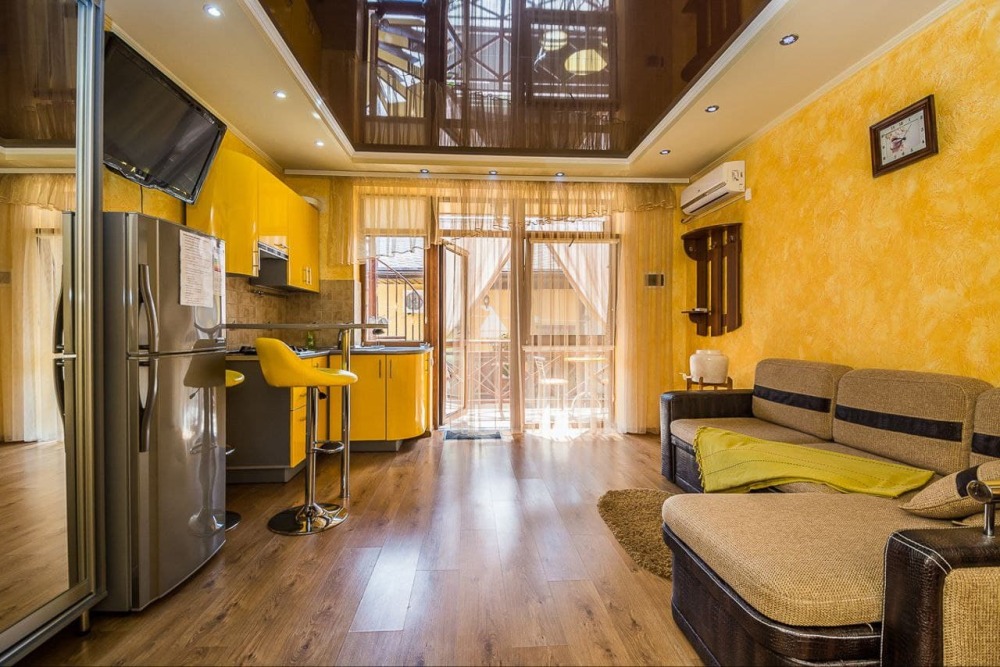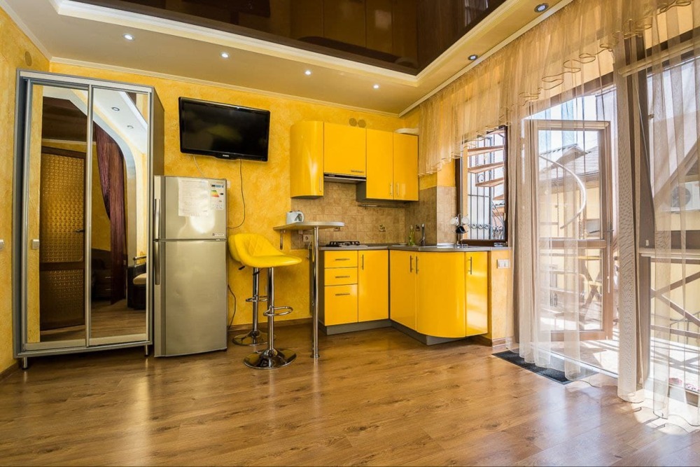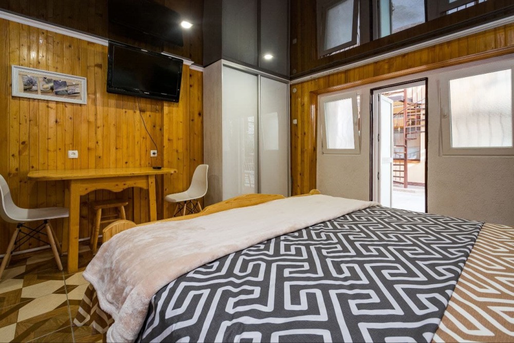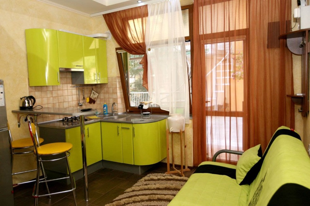 Наши номера - современные, чистые, уютные. В номере: двуспальная кровать, двуспальный диван, кондиционер (очищенный по нормам безопасности для здоровья), ТВ - кабельное, интернет Wi-Fi, оборудованная кухня со всей необходимой посудой для самостоятельного приготовления еды, вместительный холодильник с морозильной камерой, санузел с душевой (горячая/холодная вода постоянно); роллеты на окнах (непросвечивающие).