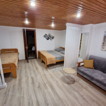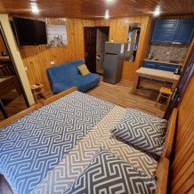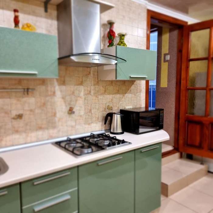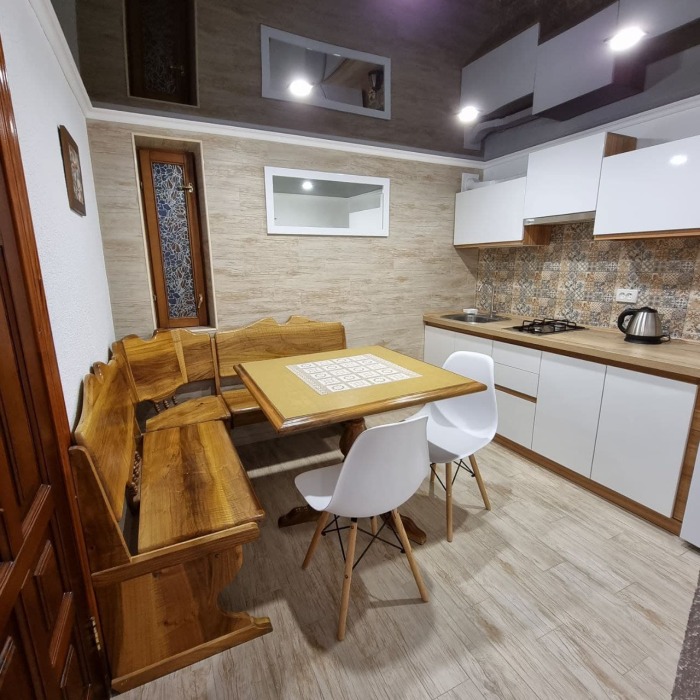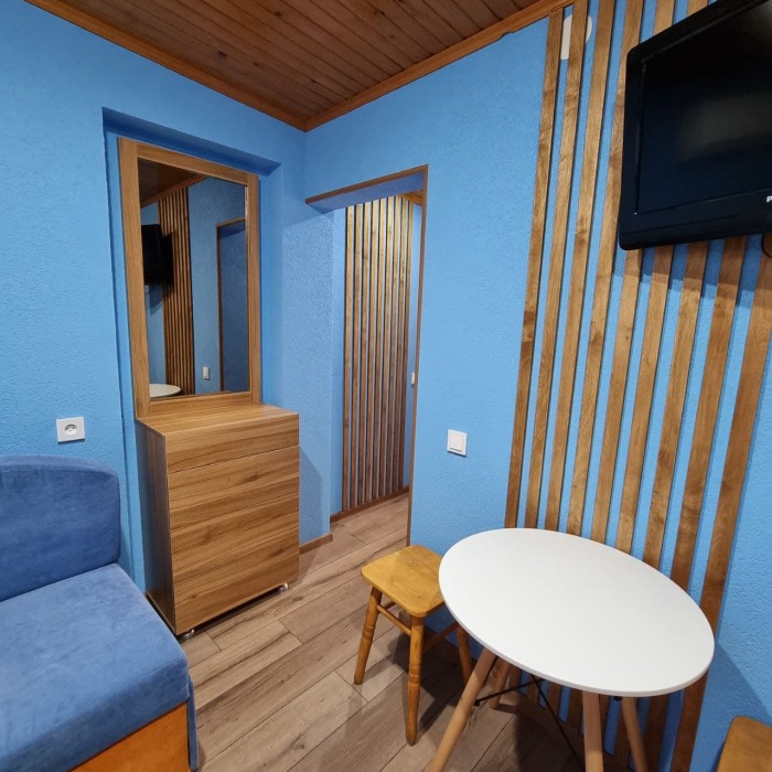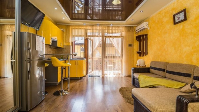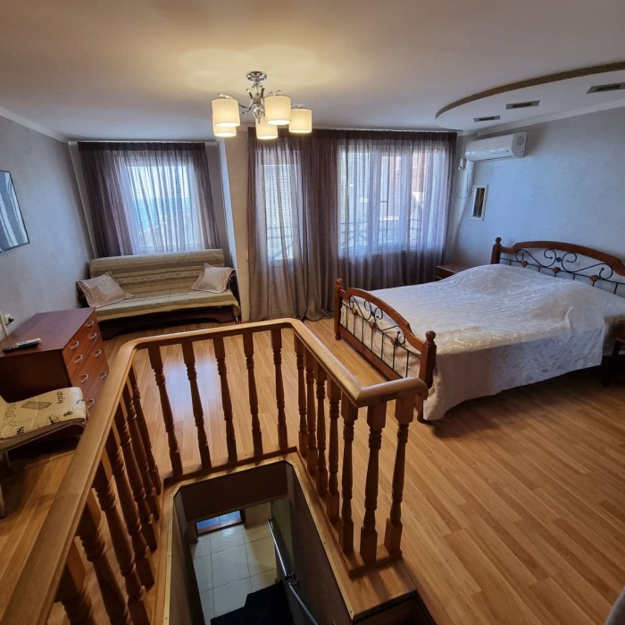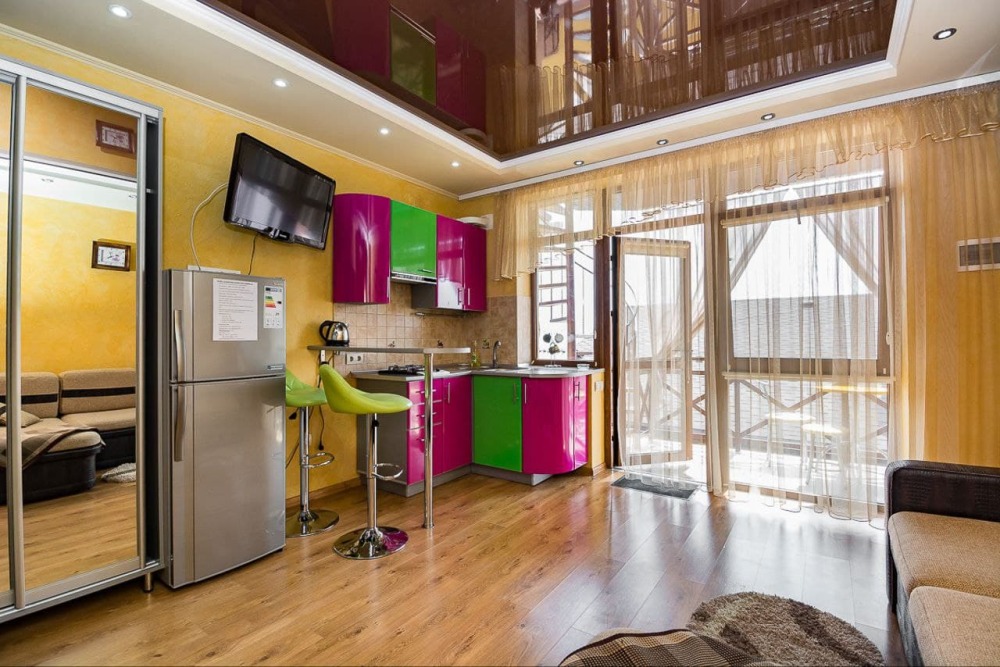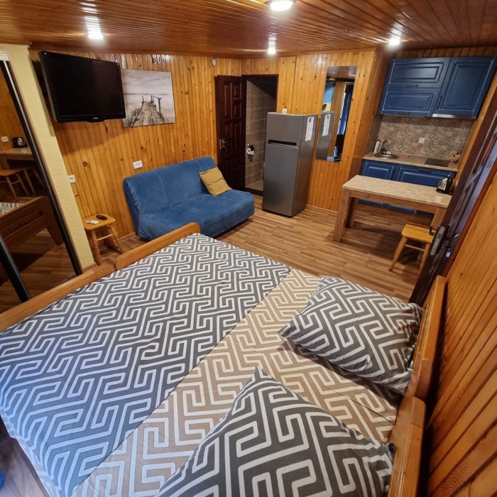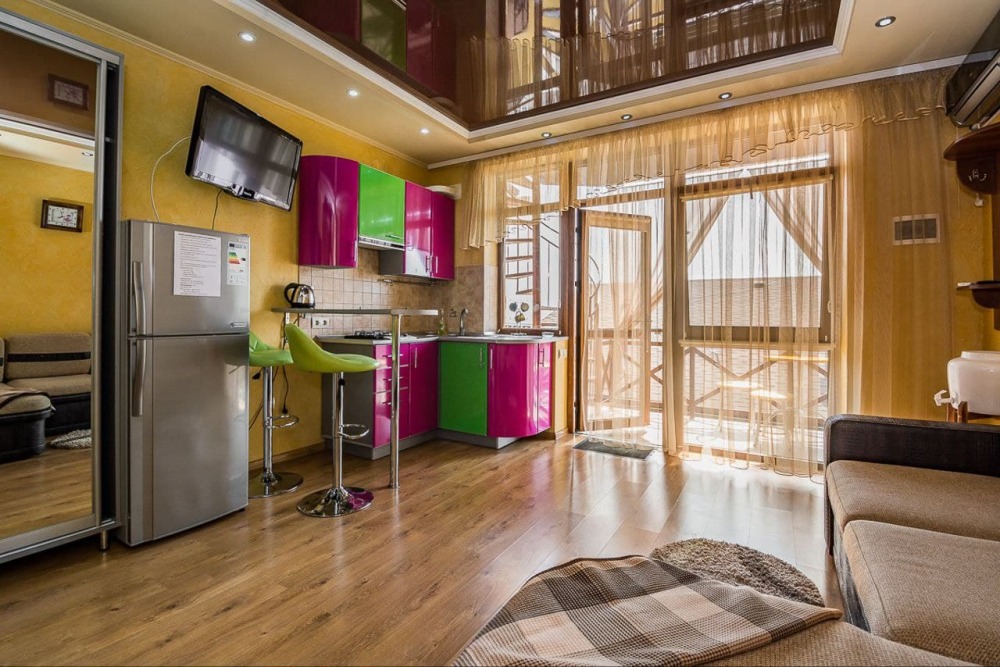 Наши номера - современные, чистые, уютные. В номере: двуспальная кровать, двуспальный диван, кондиционер (очищенный по нормам безопасности для здоровья), ТВ - кабельное, интернет Wi-Fi, оборудованная кухня со всей необходимой посудой для самостоятельного приготовления еды, вместительный холодильник с морозильной камерой, санузел с душевой (горячая/холодная вода постоянно); роллеты на окнах (непросвечивающие).
