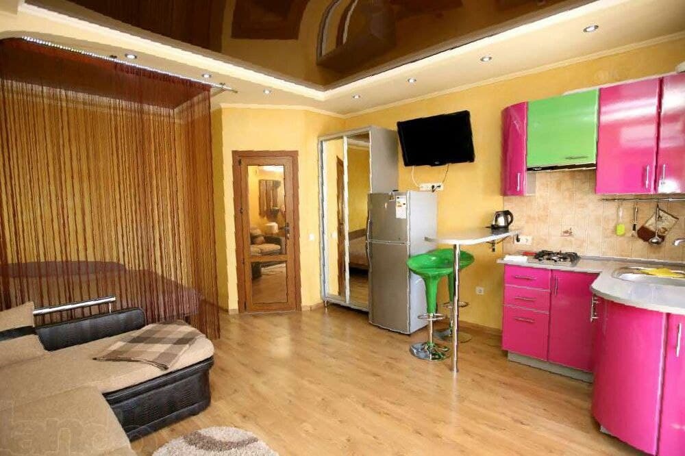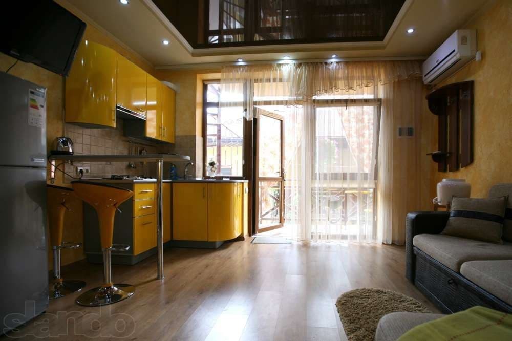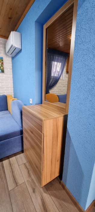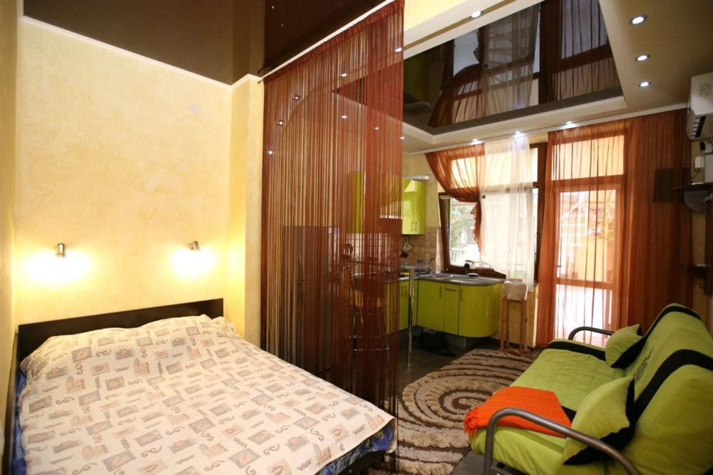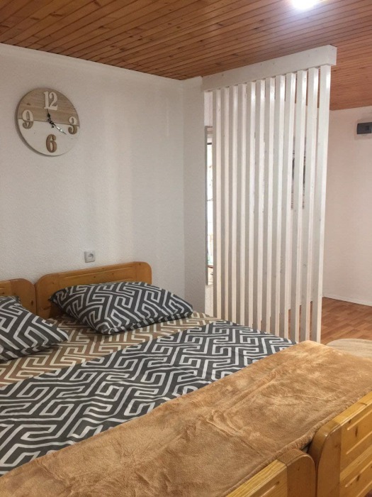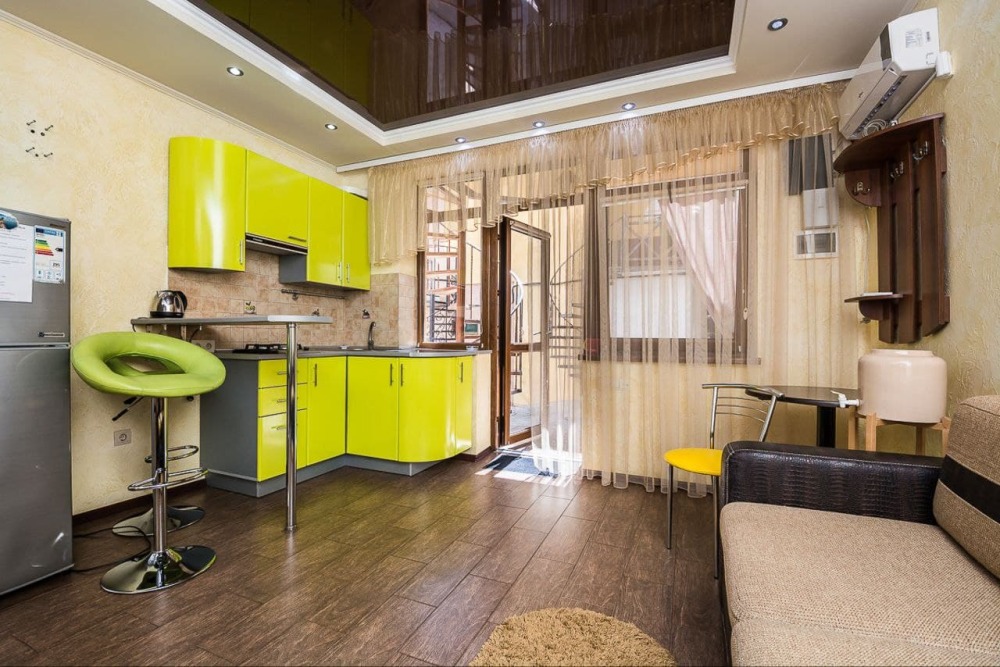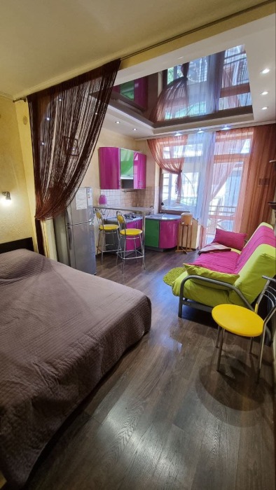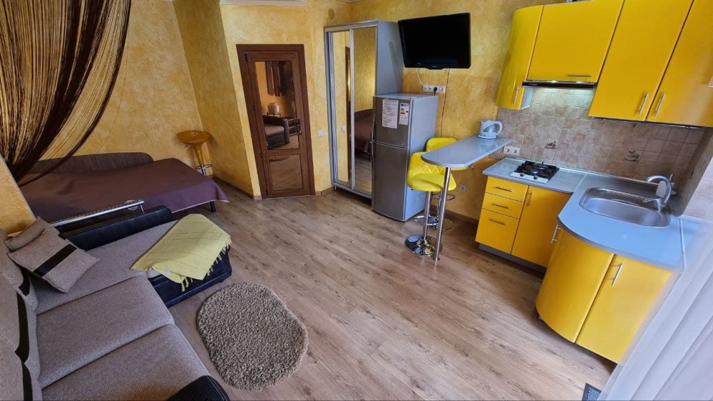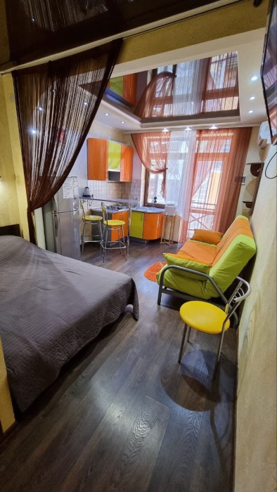 Номер 1/1 - индивидуальный номер со всем необходимым для проживания: комната - студия, кухня, полный набор посуды, холодильник, кондиционер, TV кабельное, Wi-fi, белье, сан узел с душевой (горячая/холодная вода постоянно), полотенца, просторные балконы с видом на тихую улочку без машин.