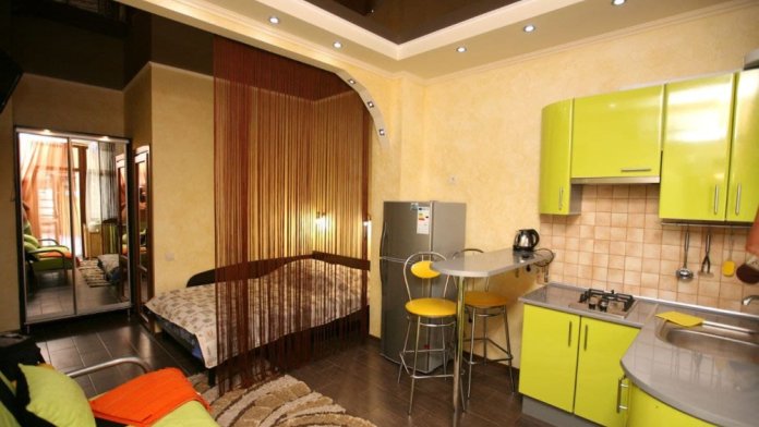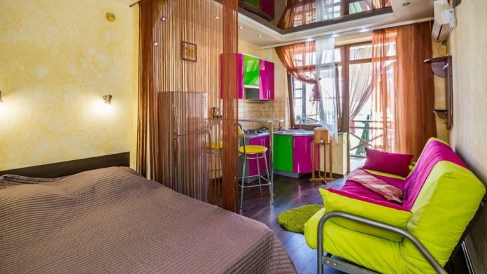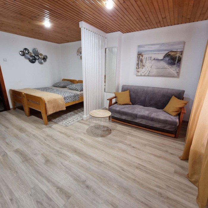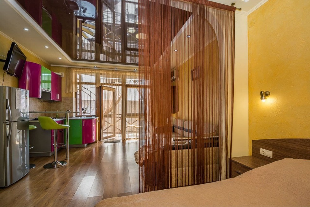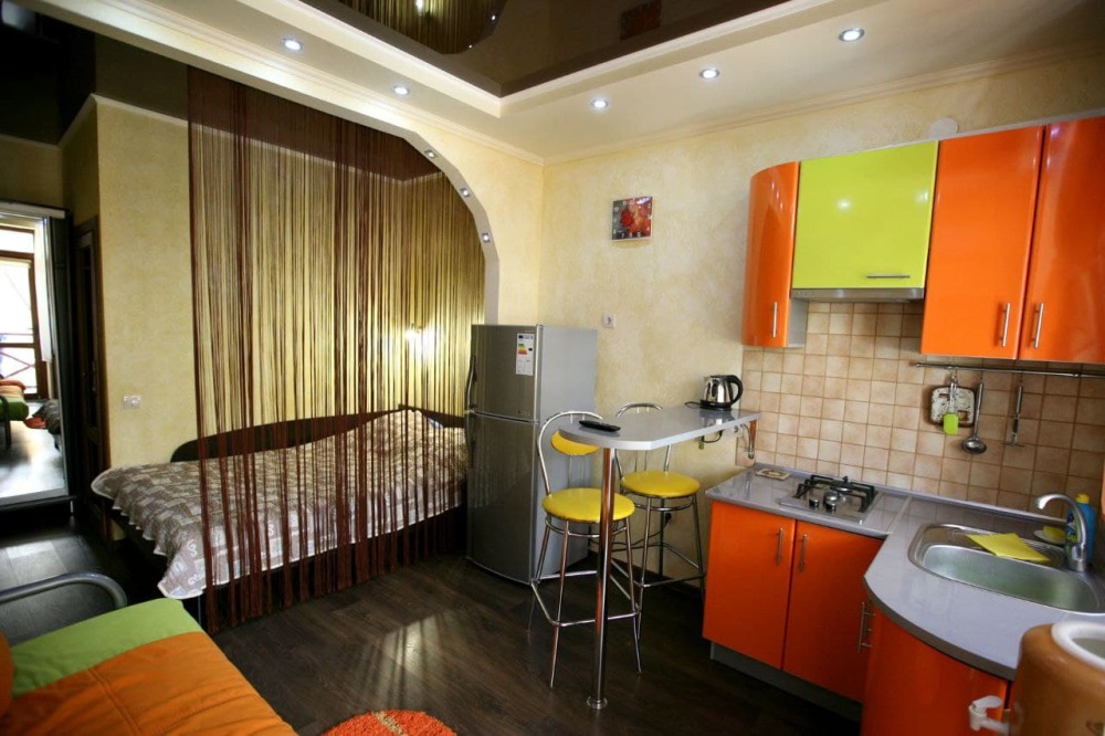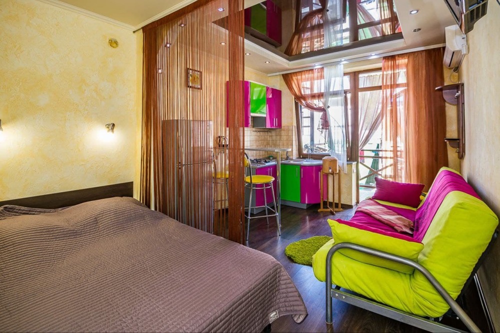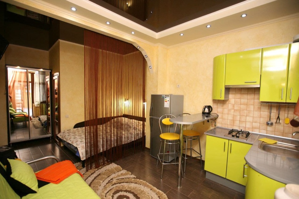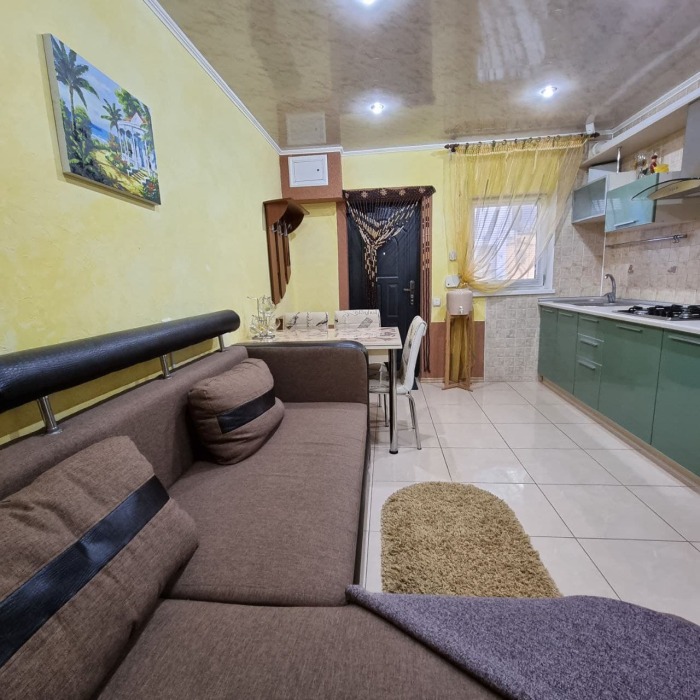 Номер 1/1 - индивидуальный номер со всем необходимым для проживания: комната - студия, кухня, полный набор посуды, холодильник, кондиционер, TV кабельное, Wi-fi, белье, сан узел с душевой (горячая/холодная вода постоянно), полотенца, просторные балконы с видом на тихую улочку без машин.