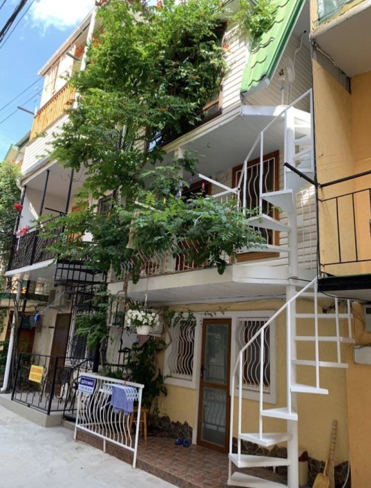 Номер 1/3 - индивидуальный номер со всем необходимым для проживания: комната - студия, кухня, полный набор посуды, холодильник, кондиционер, TV кабельное, Wi-fi, белье, сан узел с душевой (горячая/холодная вода постоянно), полотенца, просторные балконы с видом на тихую улочку без машин.