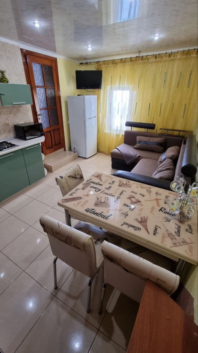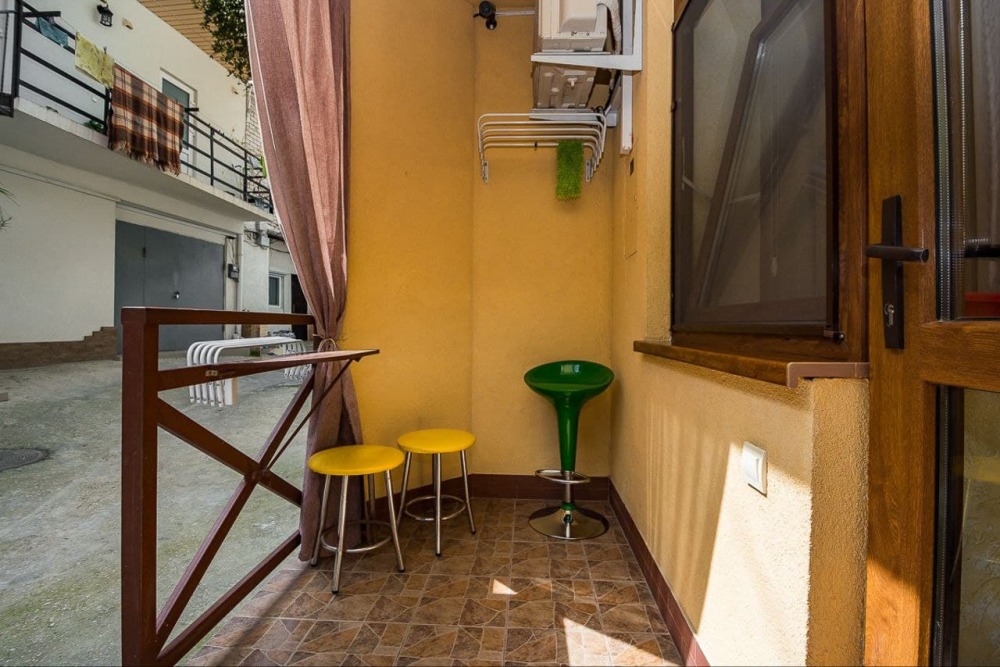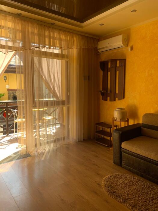 Номер 1/2 - индивидуальный номер со всем необходимым для проживания: комната - студия, кухня, полный набор посуды, холодильник, кондиционер, TV кабельное, Wi-fi, белье, сан узел с душевой (горячая/холодная вода постоянно), полотенца, просторные балконы с видом на тихую улочку без машин.