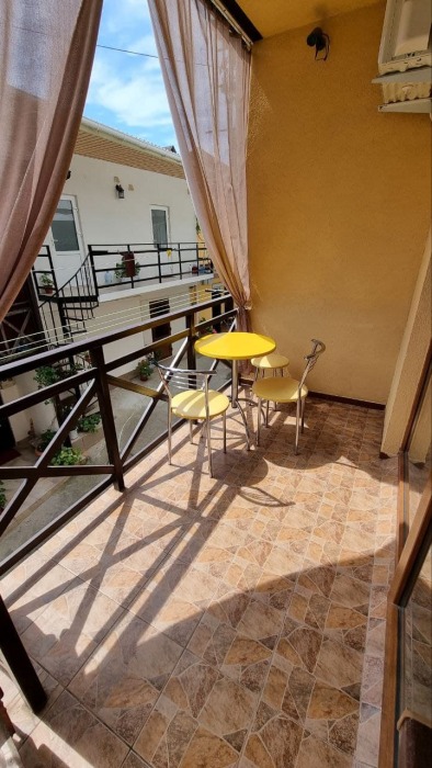 Номер 3/3 - индивидуальный номер со всем необходимым для проживания: комната - студия, кухня, полный набор посуды, холодильник, кондиционер, TV кабельное, Wi-fi, белье, сан узел с душевой (горячая/холодная вода постоянно), полотенца, просторные балконы с видом на тихую улочку без машин.