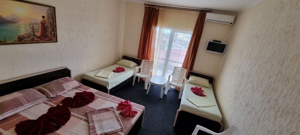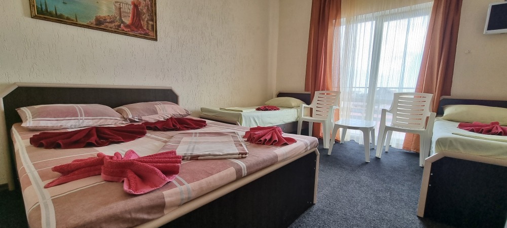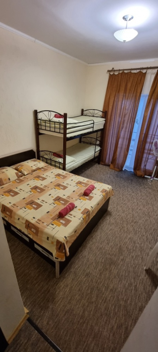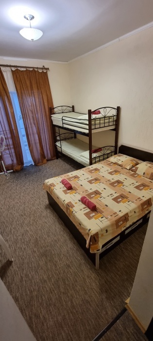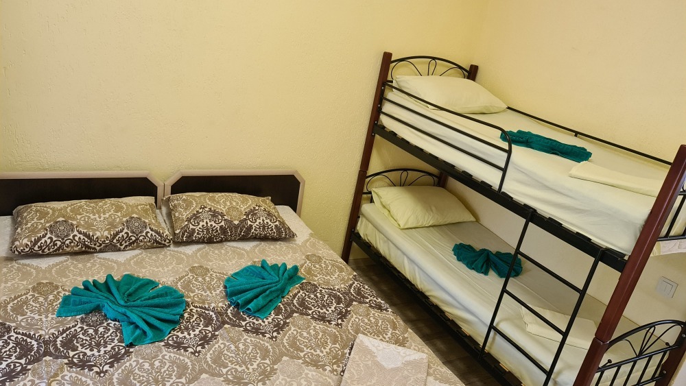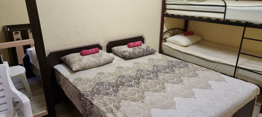 Спальные места: 4 односпальных кровати или двуспальная кровать и 2 односпальных кровати, или двуспальная кровать и двухъярусная кровать.