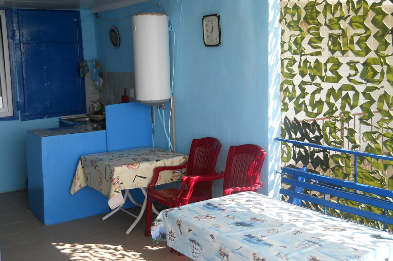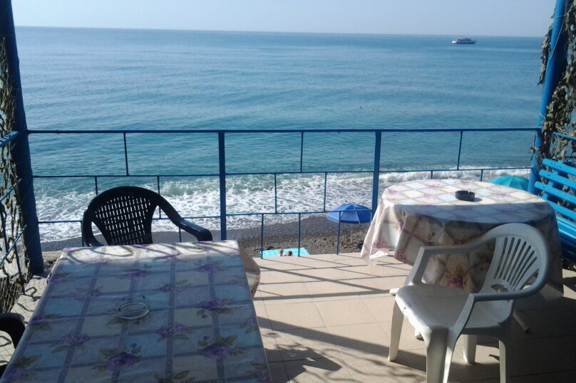 Вы практически находитесь на пляже, до уреза воды 15-20 метров, Вам не надо далеко ходить, Вы всегда на море. На 2м и 3м этажах на площадку вынесена кухня (одна на два номера) со всем набором кухонных принадлежностей, столиками для посиделок под успокаивающий шум прибоя с бокалом крымского вина.