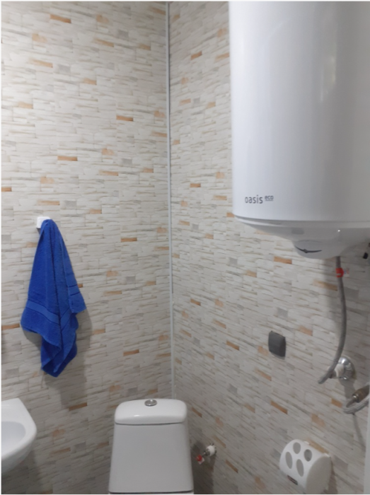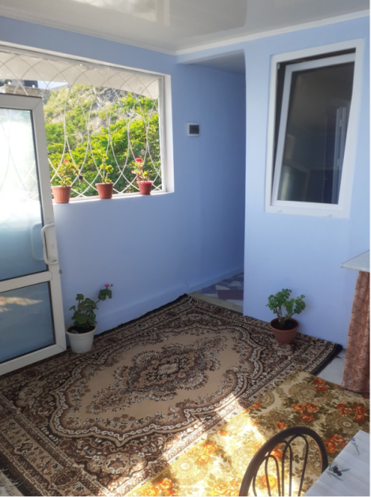 Совмещенный санузел, ТВ (кабельное), холодильник, кондиционер, шкаф для одежды, утюг. Большая площадка (6х4 метра с стационарной крышей) с прекрасным видом на море. На площадке расположен кухонный уголок (газовая плита, кастрюли, тарелки, вилки, ложки, чашки, плошки), стоят столики.