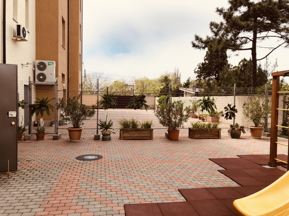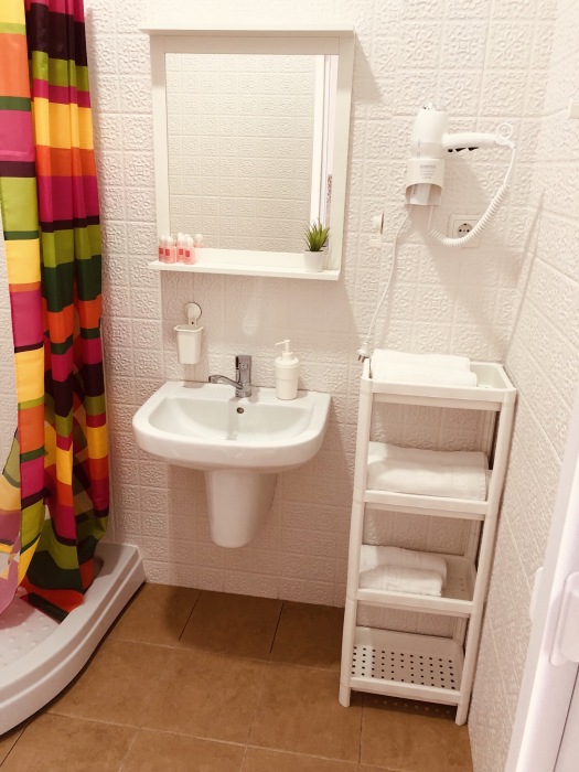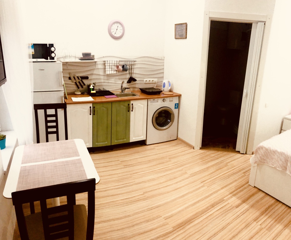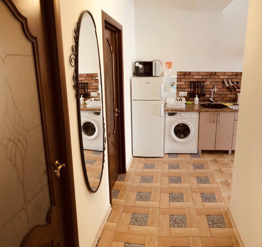 В числе удобств апартаментов: уютный закрытый дворик с детской площадкой, уборка апартаментов и смена полотенец на 4-5 день пребывания, смена постельного белья на 7-8 день пребывания. На первом этаже здания располагается семейное кафе «Вёсла».