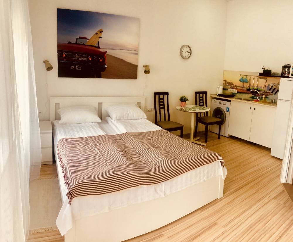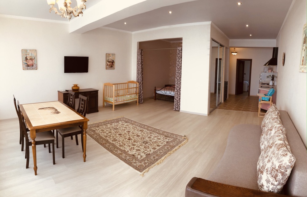 Апартаменты - это комфортные номера квартирного типа в новом здании, которое находится прямо на Лазурной набережной. В просторных номерах есть всё необходимое для комфортного семейного отдыха с детьми.