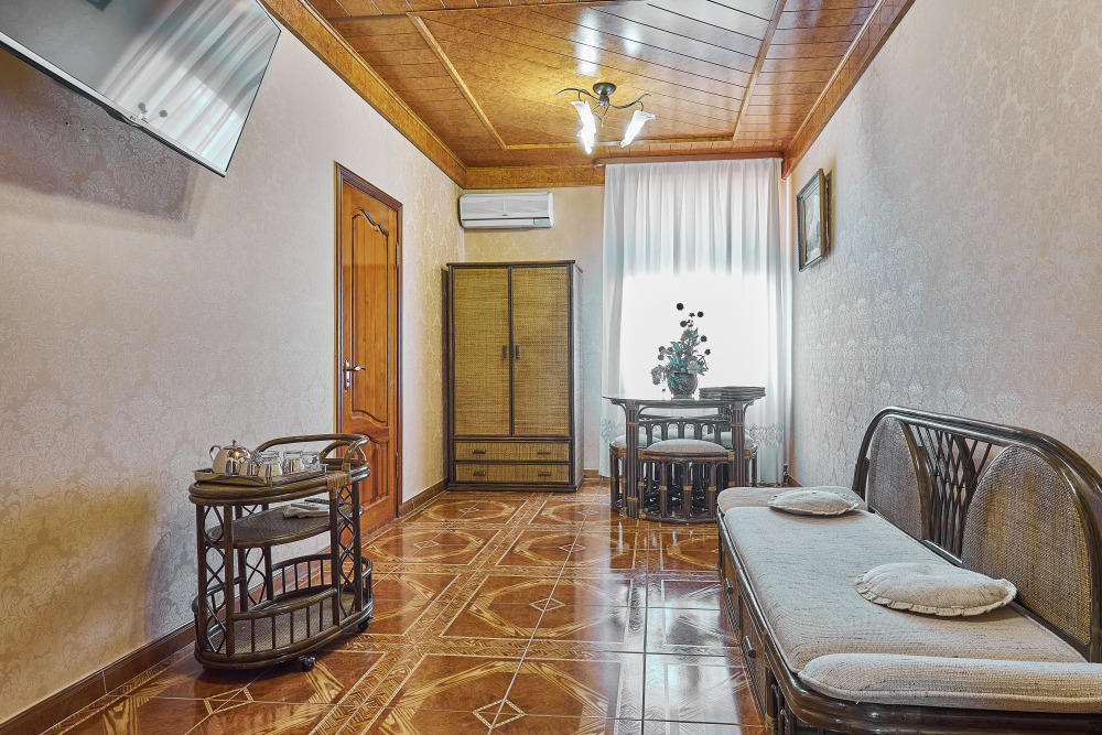 Комфортабельный просторный номер: 2 основных и 2 дополнительных спальных места. Удобная мягкая мебель, все необходимое для хорошего отдыха. Идеально подойдет для семейного отдыха и длительного проживания.