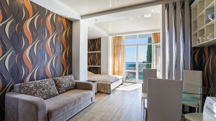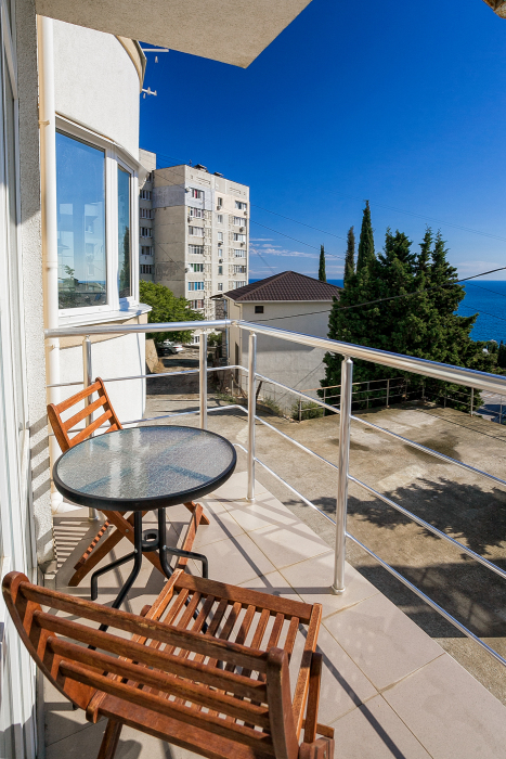 Однокомнатная квартира-студио имеет абсолютно все для Вашего комфортного отдыха: двухспальный диван, двухспальная кровать, шкаф, кондиционер, ТV, Wi-Fi, электроплита, микроволновка, электрочайник, мультиварка, большой холодильник, посуда, постельное, полотенце, фен, утюг, душевая кабинка, стиральная машинка, балкон с прекрасным видом на море.