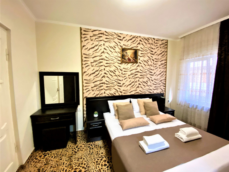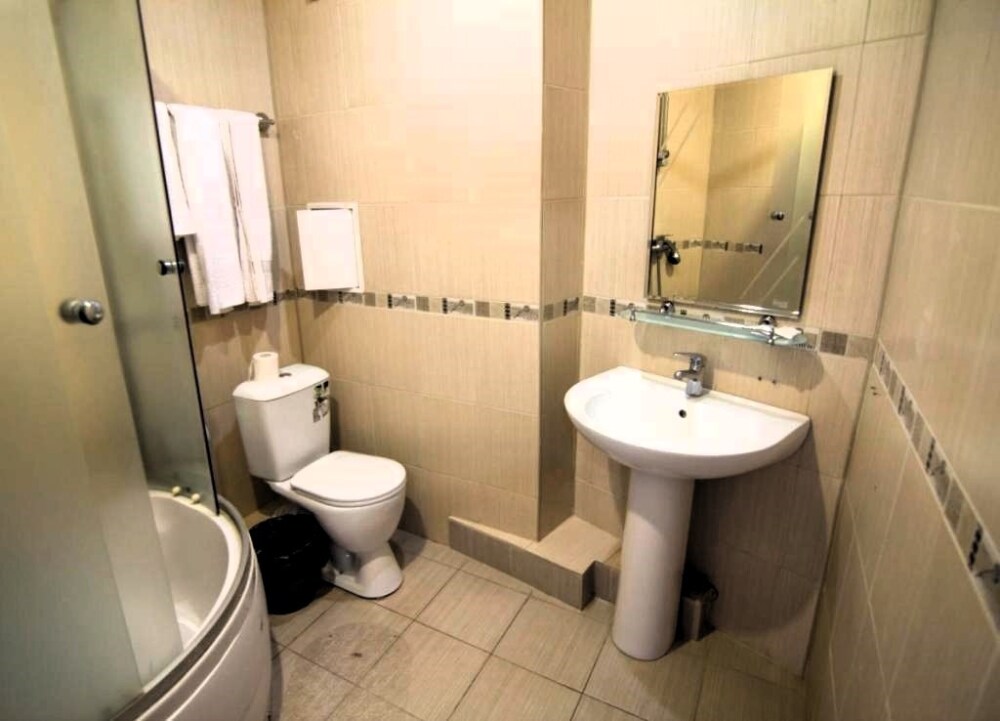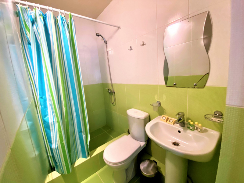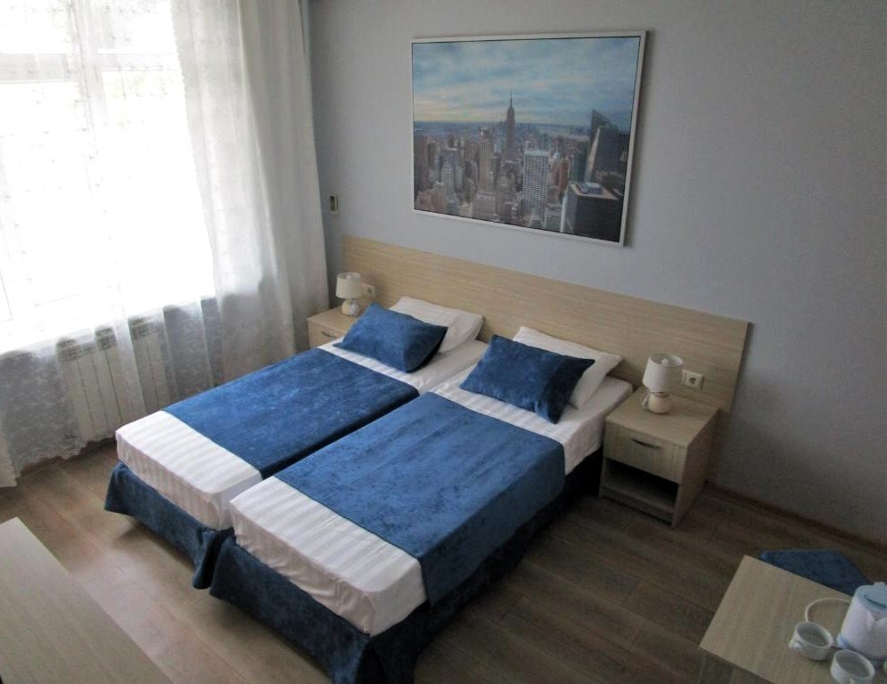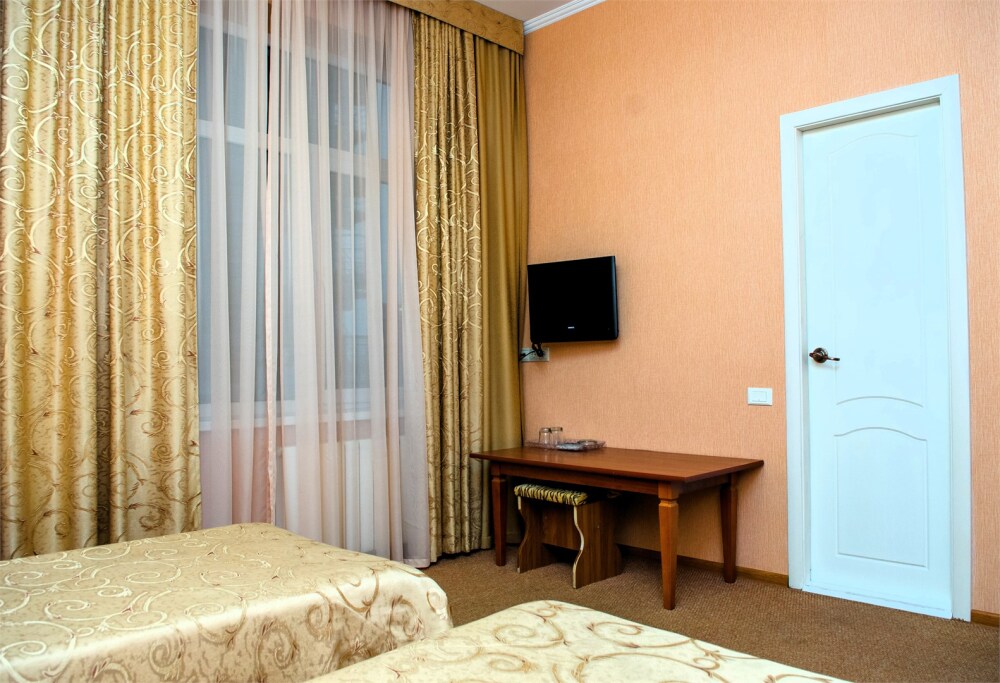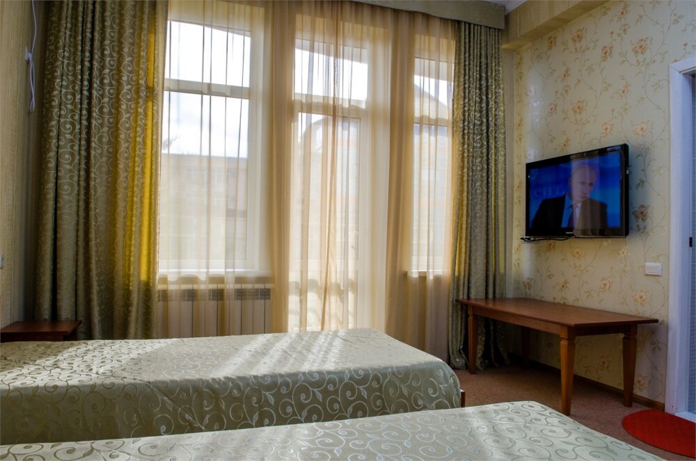 В номере: кровать duble или twin, телевизор, зеркало, кондиционер, гардероб, холодильник, стаканы, душ и санузел, пуфик, комплект полотенец, косметические принадлежности. Дополнительное место - еврораскладушка. Максимальное количество человек – 3.