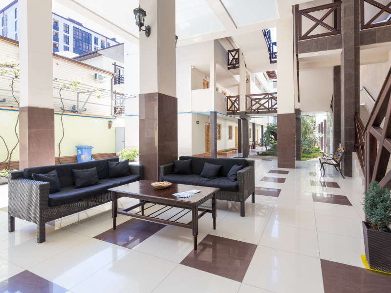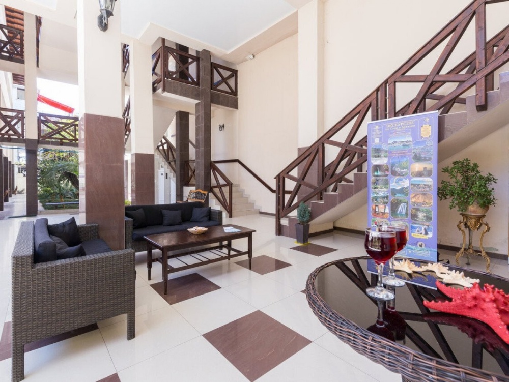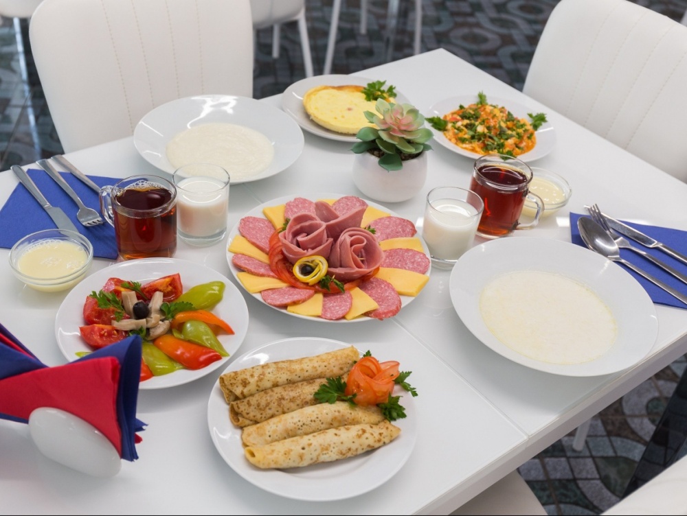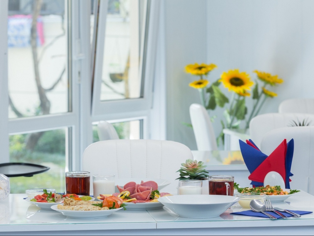 На первом этаже в каждом корпусе нашего отеля расположилось уютное кафе для гостей, где они смогут воспользоваться полноценным вкусным питанием, включенным в проживание, по сбалансированному семидневному сет- меню, специально разработанному шеф-поваром нашего отеля.