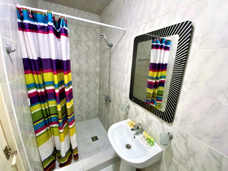 В номере: кровать duble или twin, телевизор, зеркало, кондиционер, гардероб, холодильник, стаканы, душ и санузел, пуфик, комплект полотенец, косметические принадлежности.