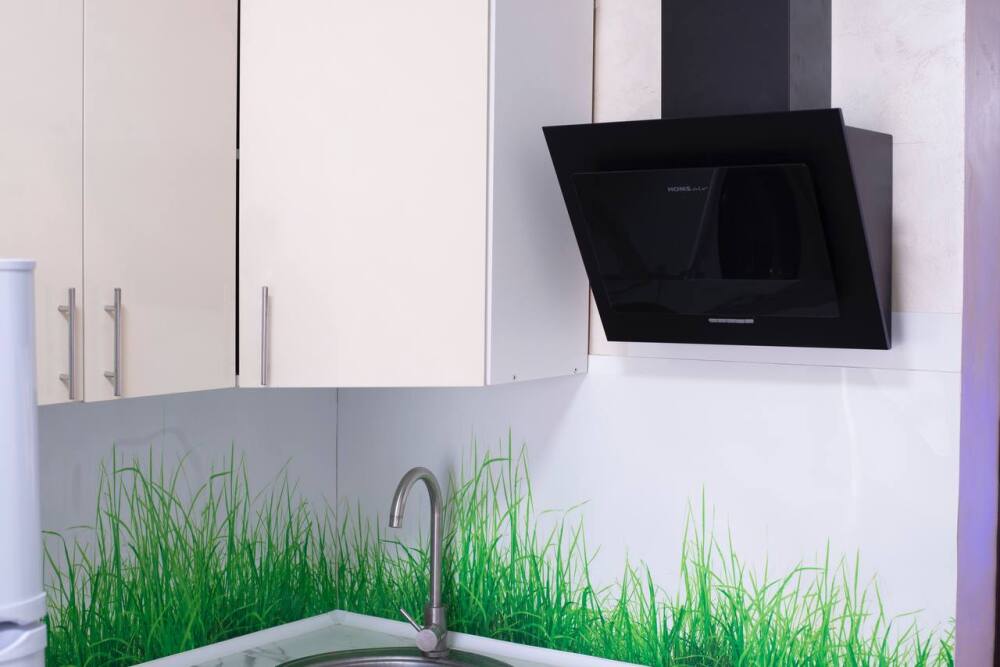 В спальне кондиционер, телевизор, небольшой шкафчик, утюг, на балконе стоит холодильник, микроволновая печь, чайник, тумбочка с кухонной посудой (чашки, тарелки, миски для салатов, миски для фруктов, приборы и доска). Стол и три стула. Номер расположен только на третьем этаже с балконом и красивым видом.