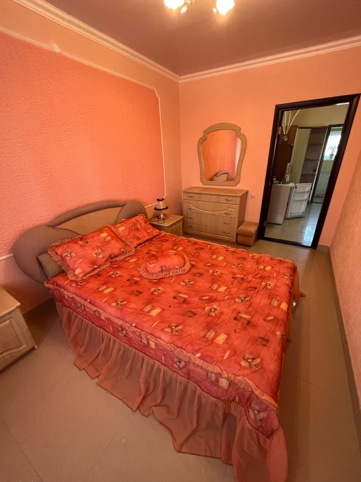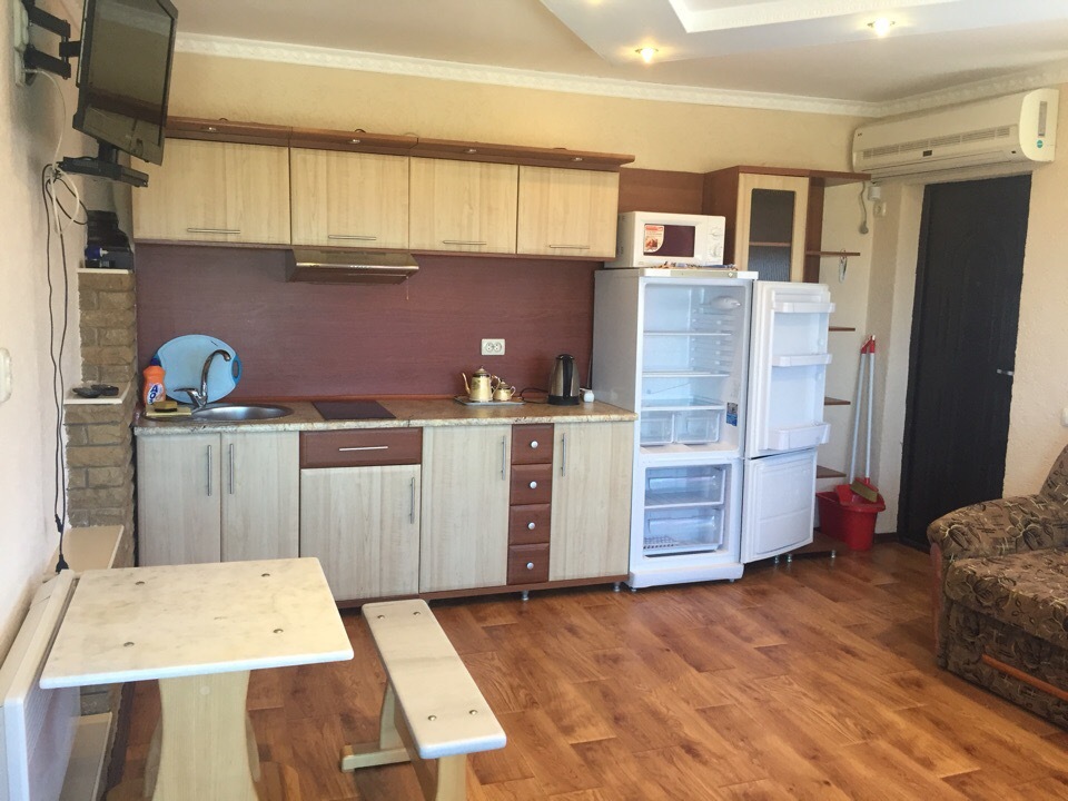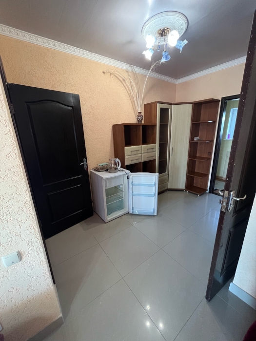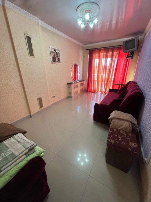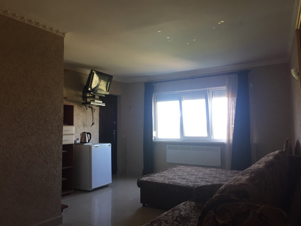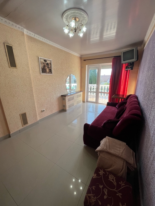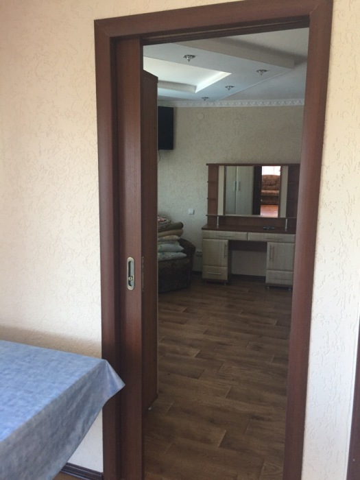 Номер рассчитан на комфортное размещение 2-5 человек. В номере есть отдельный санузел. Вода, как холодная, так и горячая подается круглосуточно и бесперебойно. Нагрев воды обеспечивается бойлерами достаточной мощности, чтобы в любое время суток не испытывать дискомфорта. Номер имеет широкое двухметровое окно и просторный балкон, откуда открывается вид на море. Две отдельные комнаты, своя кухня. Санузел в номере. Гостиная. Если Вы приехали компанией либо привыкли чувствовать себя, как дома, имея все под рукой, то этот номер для Вас.