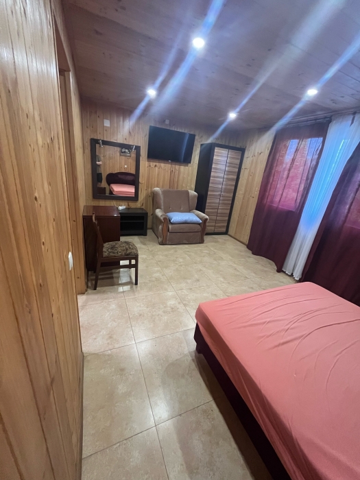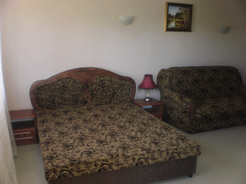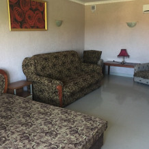 Номер рассчитан на комфортное размещение 2-4 человек. В номере есть отдельный санузел. Вода, как холодная, так и горячая подается круглосуточно и бесперебойно. Нагрев воды обеспечивается бойлерами достаточной мощности, чтобы в любое время суток не испытывать дискомфорта. Номер имеет широкое 2-х метровое окно и просторный балкон, откуда открывается вид на море.