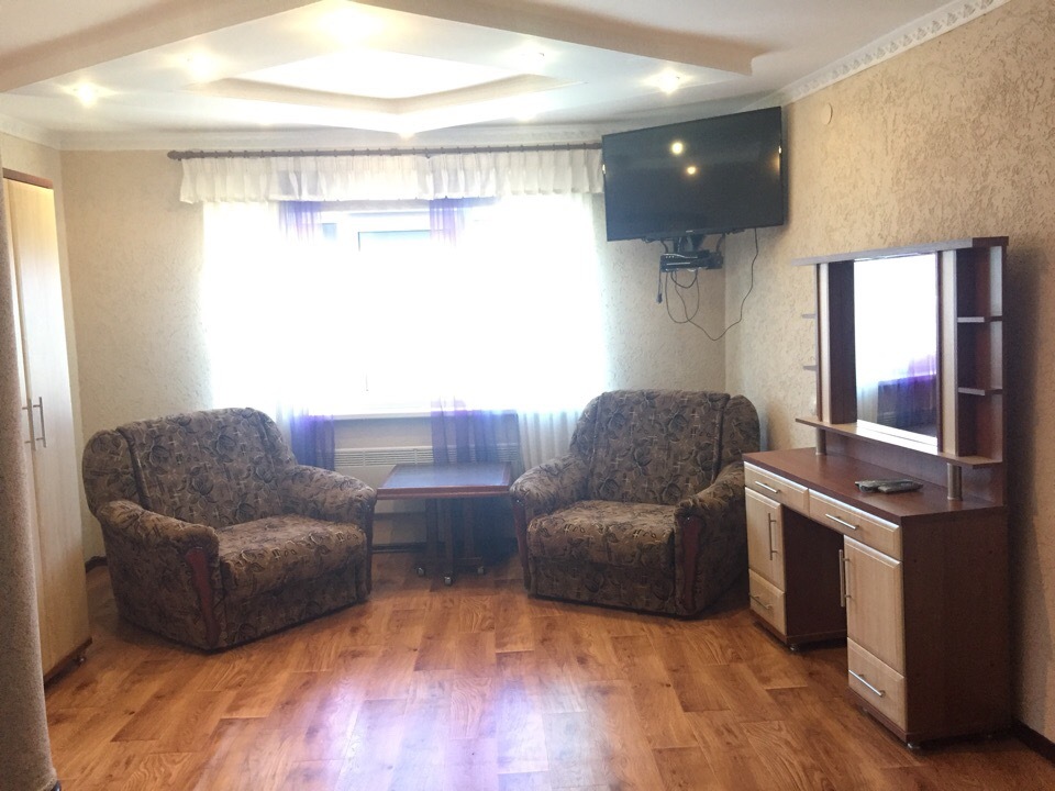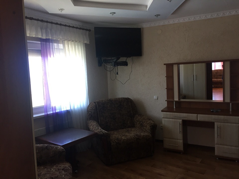 Номер рассчитан на комфортное размещение 2-5 человек. В номере есть отдельный санузел. Вода, как холодная, так и горячая подается круглосуточно и бесперебойно. Нагрев воды обеспечивается бойлерами достаточной мощности, чтобы в любое время суток не испытывать дискомфорта. Номер имеет широкое двухметровое окно и просторный балкон, откуда открывается шикарный вид. Две отдельные комнаты, своя кухня. Санузел в номере. Гостиная. Если Вы приехали компанией либо привыкли чувствовать себя, как дома, имея все под рукой, то этот номер для Вас.
