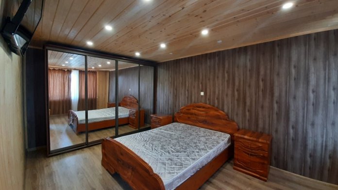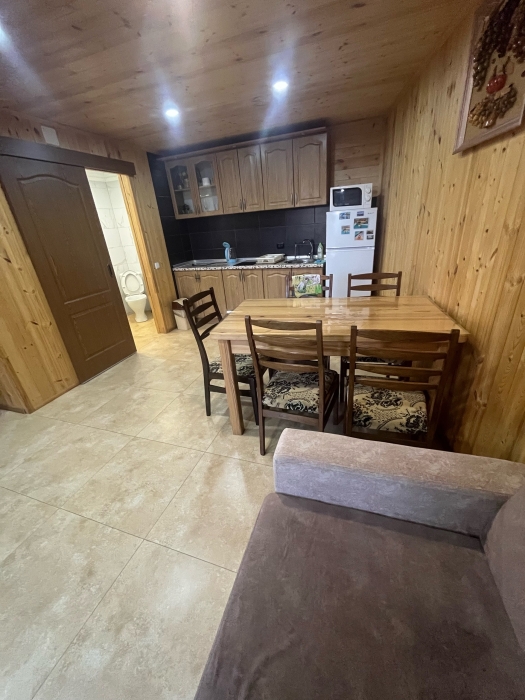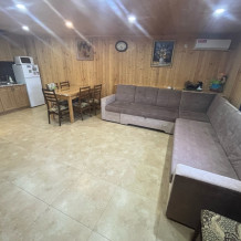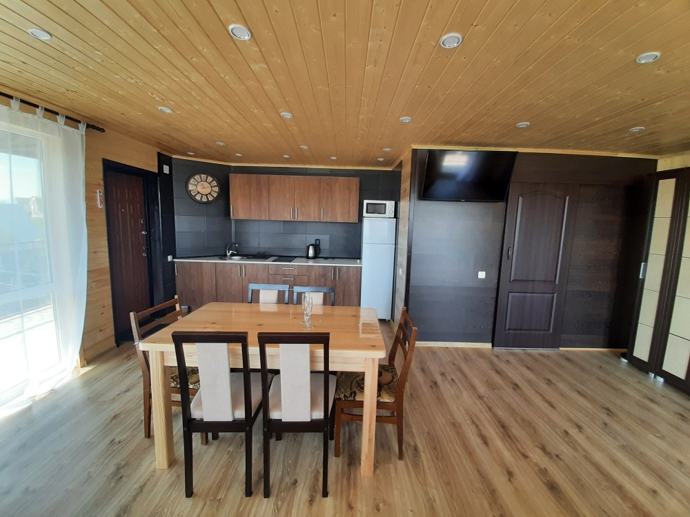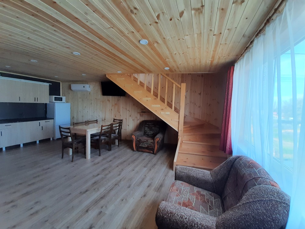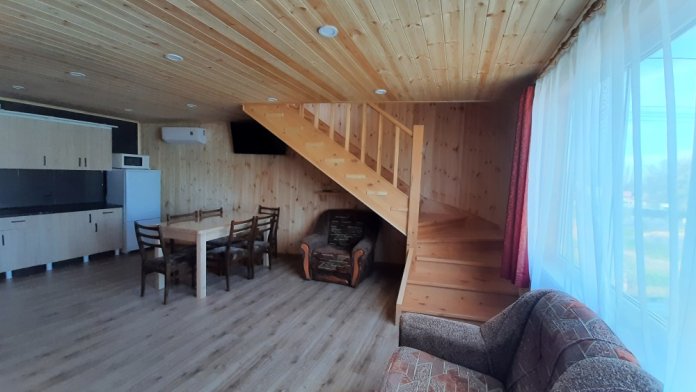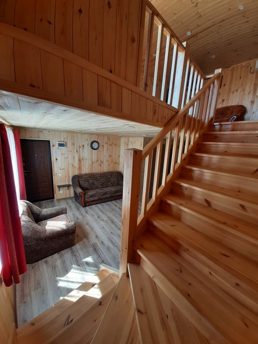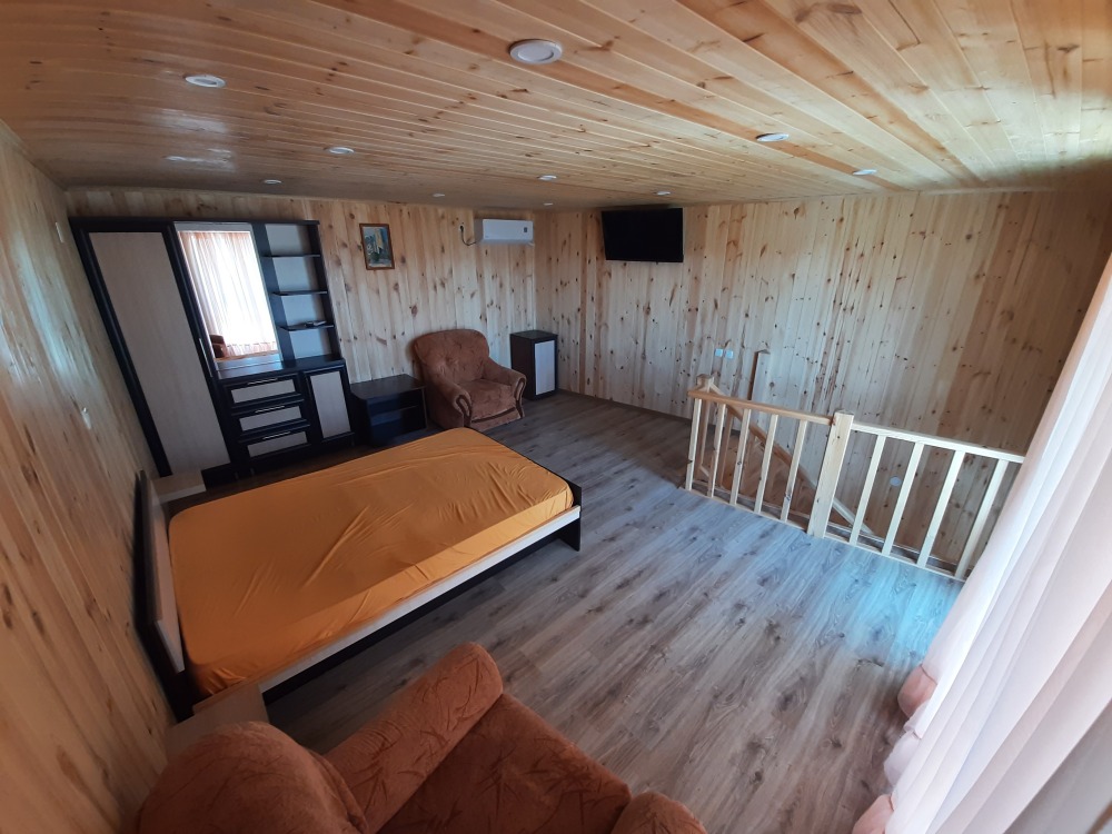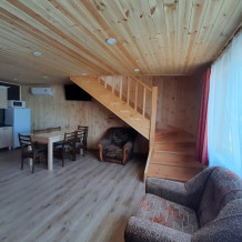 Номер рассчитан на комфортное размещение 2-5 человек. В номере есть отдельный санузел. Вода, как холодная, так и горячая подается круглосуточно и бесперебойно. Нагрев воды обеспечивается бойлерами достаточной мощности, чтобы в любое время суток не испытывать дискомфорта. Номер имеет широкое двухметровое окно и просторный балкон, откуда открывается шикарный вид. Номер состоит из 2 этажей. Своя кухня. Санузел в номере. Гостиная. Если Вы приехали компанией либо привыкли чувствовать себя, как дома, имея все под рукой, то этот номер для Вас.