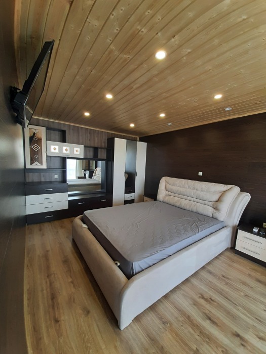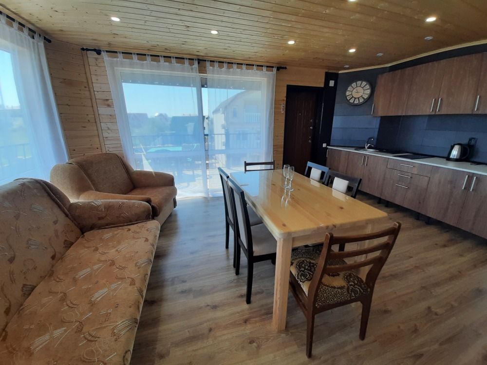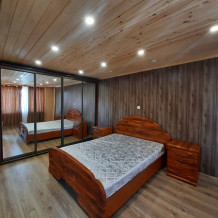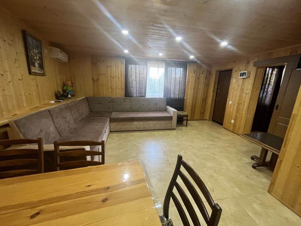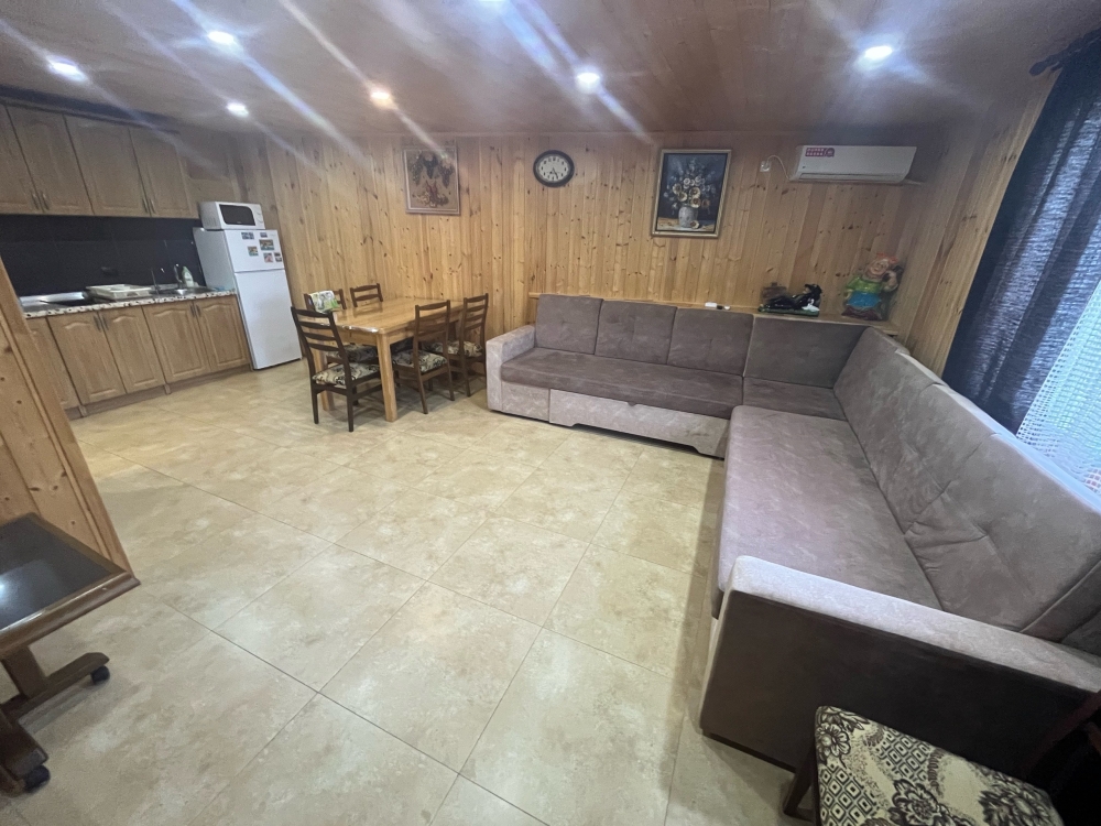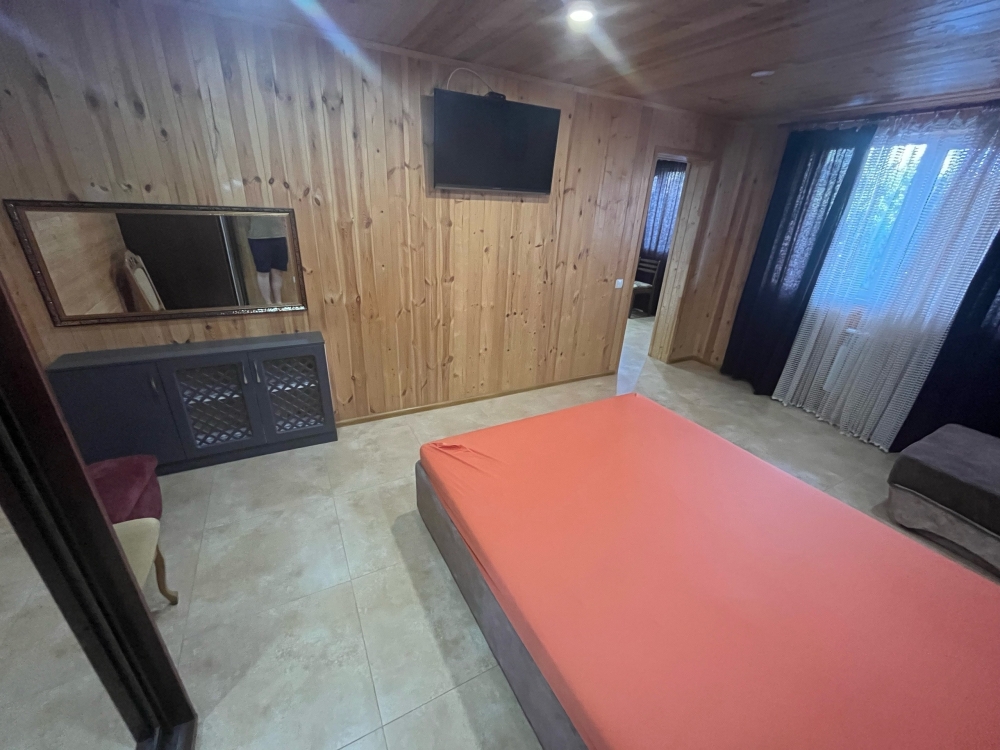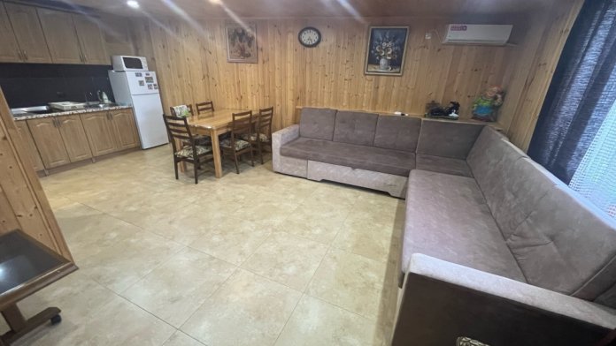 Номер рассчитан на комфортное размещение 2-5 человек. В номере есть отдельный санузел. Вода, как холодная, так и горячая подается круглосуточно и бесперебойно. Нагрев воды обеспечивается бойлерами достаточной мощности, чтобы в любое время суток не испытывать дискомфорта. Номер имеет широкое двухметровое окно и просторный балкон, откуда открывается шикарный вид. Номер состоит из 2 этажей. Своя кухня. Санузел в номере. Гостиная. Если Вы приехали компанией либо привыкли чувствовать себя, как дома, имея все под рукой, то этот номер для Вас.
