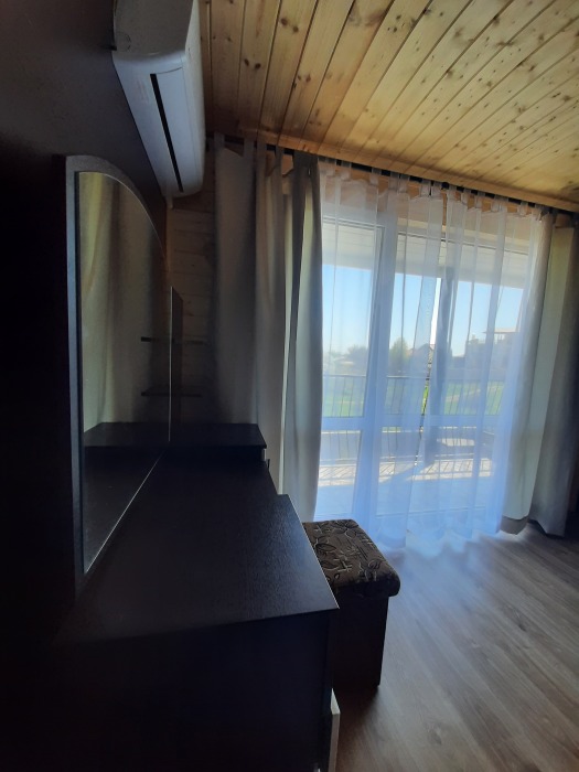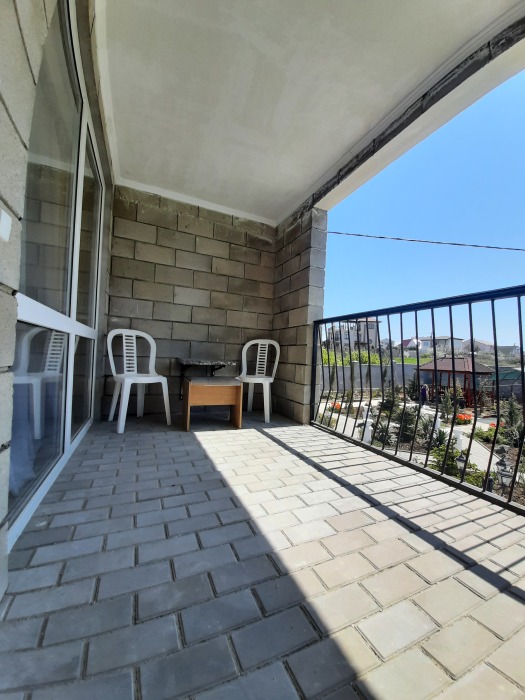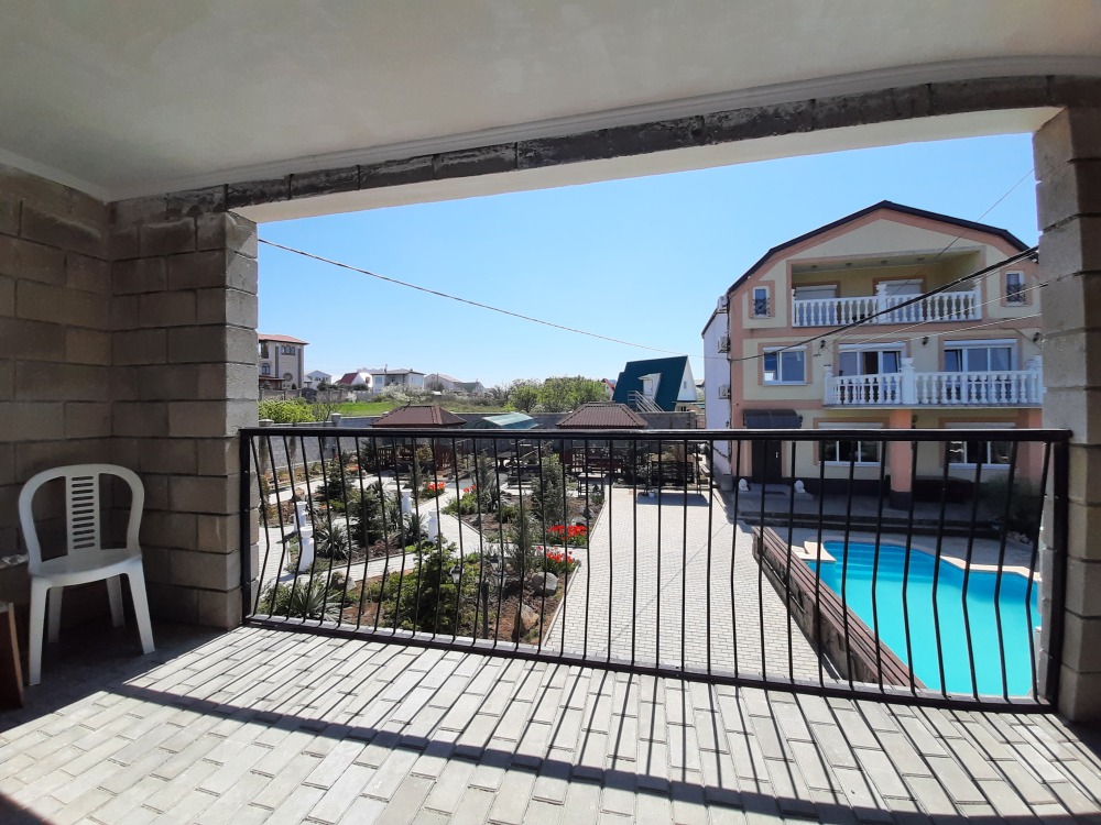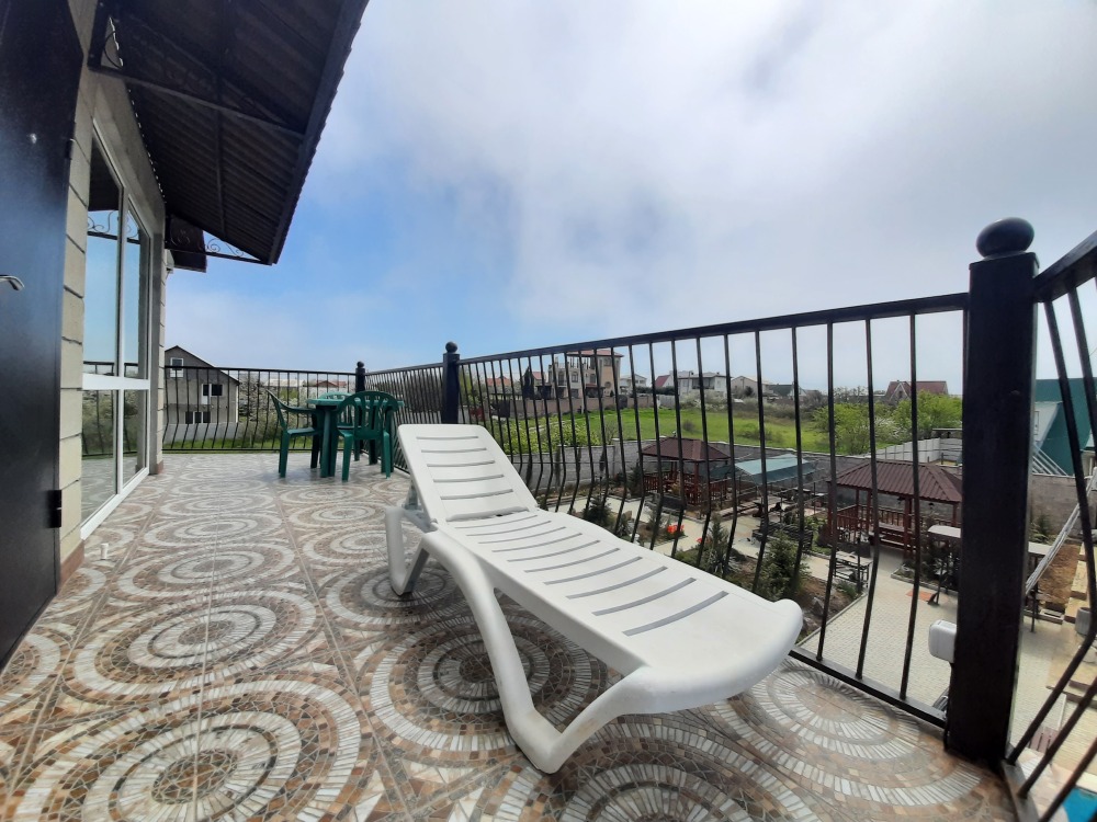 Номер рассчитан на комфортное размещение 4-5 человек. В номере есть отдельный санузел (душевая). Вода, как холодная, так и горячая подается круглосуточно и бесперебойно. Нагрев воды обеспечивается бойлерами достаточной мощности, чтобы в любое время суток не испытывать дискомфорта. Номер имеет широкое двухметровое окно и просторный балкон, откуда открывается вид на море.