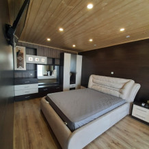 Номер рассчитан на комфортное размещение 2-5 человек. В номере есть отдельный санузел. Вода, как холодная, так и горячая подается круглосуточно и бесперебойно. Нагрев воды обеспечивается бойлерами достаточной мощности, чтобы в любое время суток не испытывать дискомфорта. Номер имеет широкие окна и просторный балкон, откуда открывается шикарный вид. Две отдельные комнаты, своя кухня. Санузел в номере. Гостиная. Если Вы приехали компанией либо привыкли чувствовать себя, как дома, имея все под рукой, то этот номер для Вас.