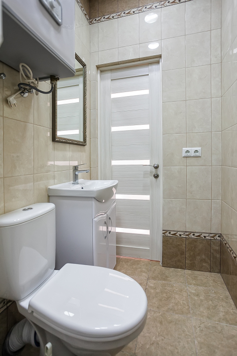 В квартире двухспальная кровать и одна еврораскладушка, можно разместить три человека.