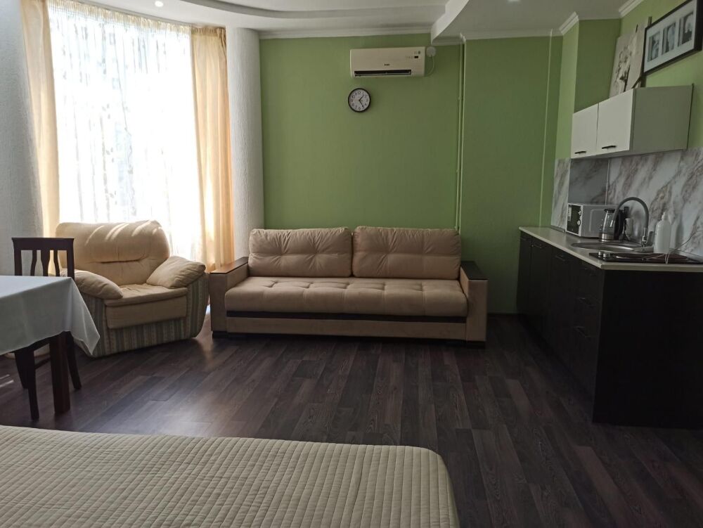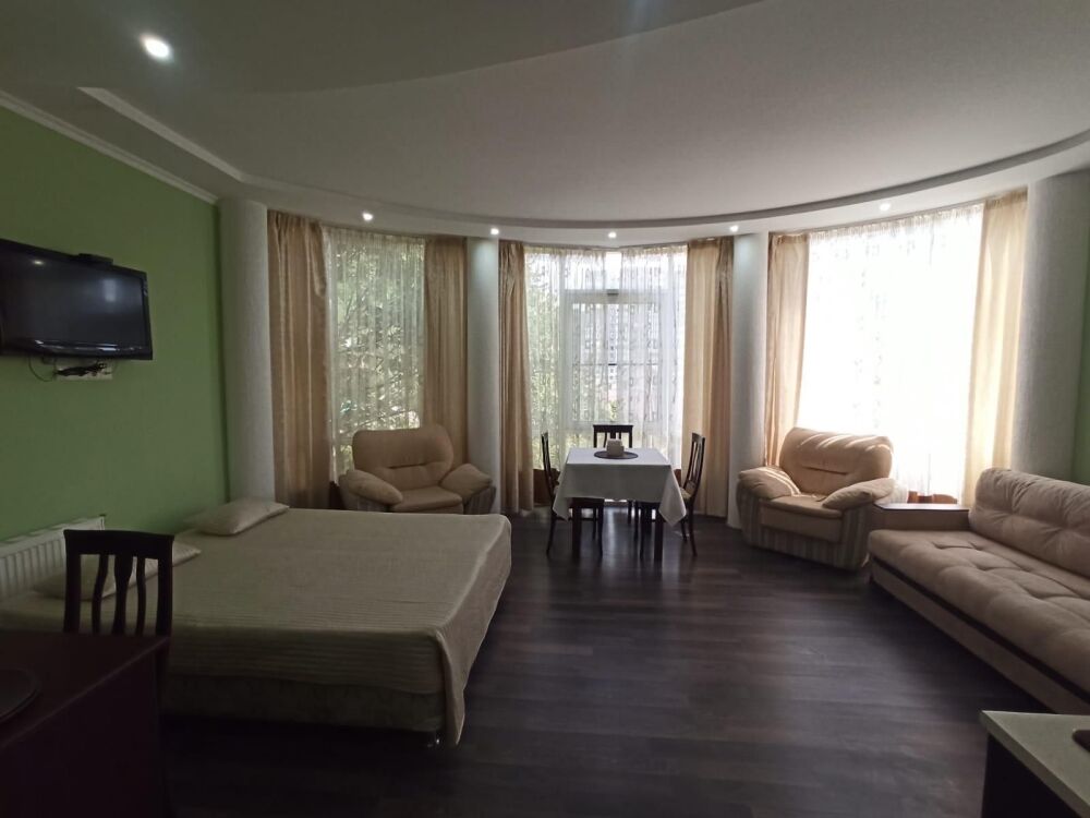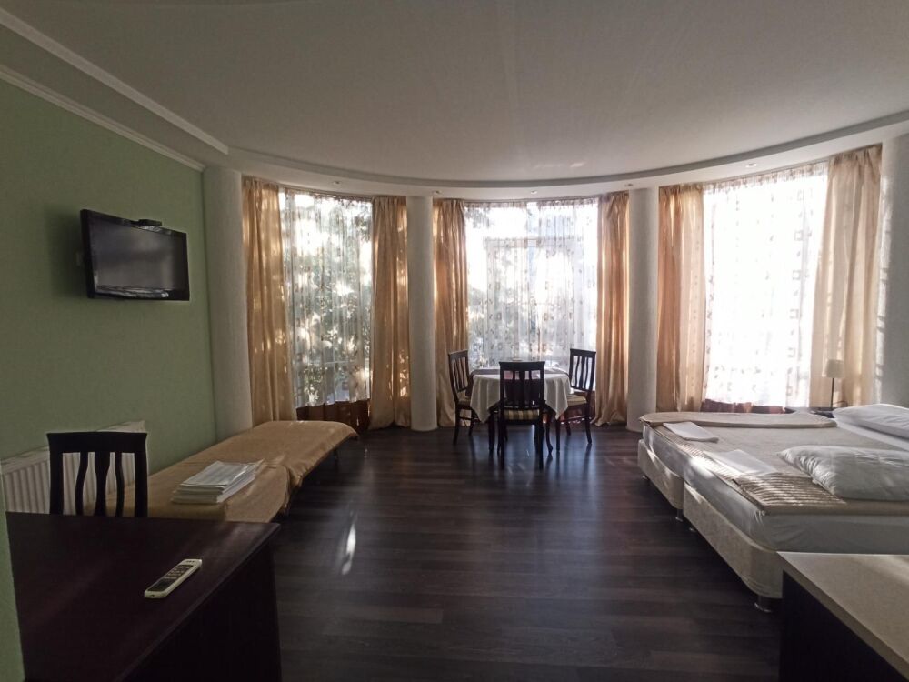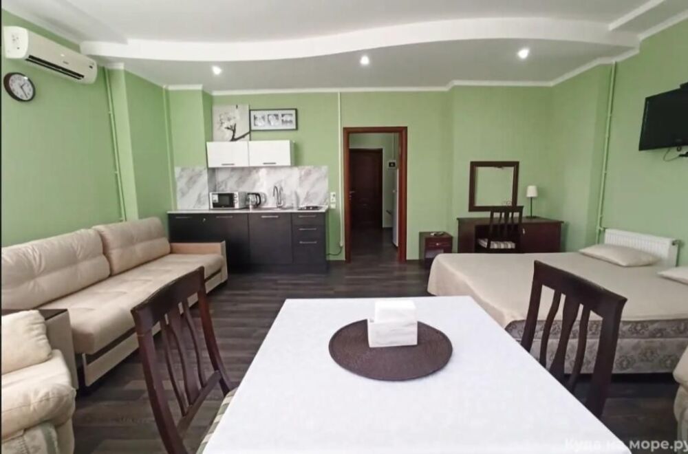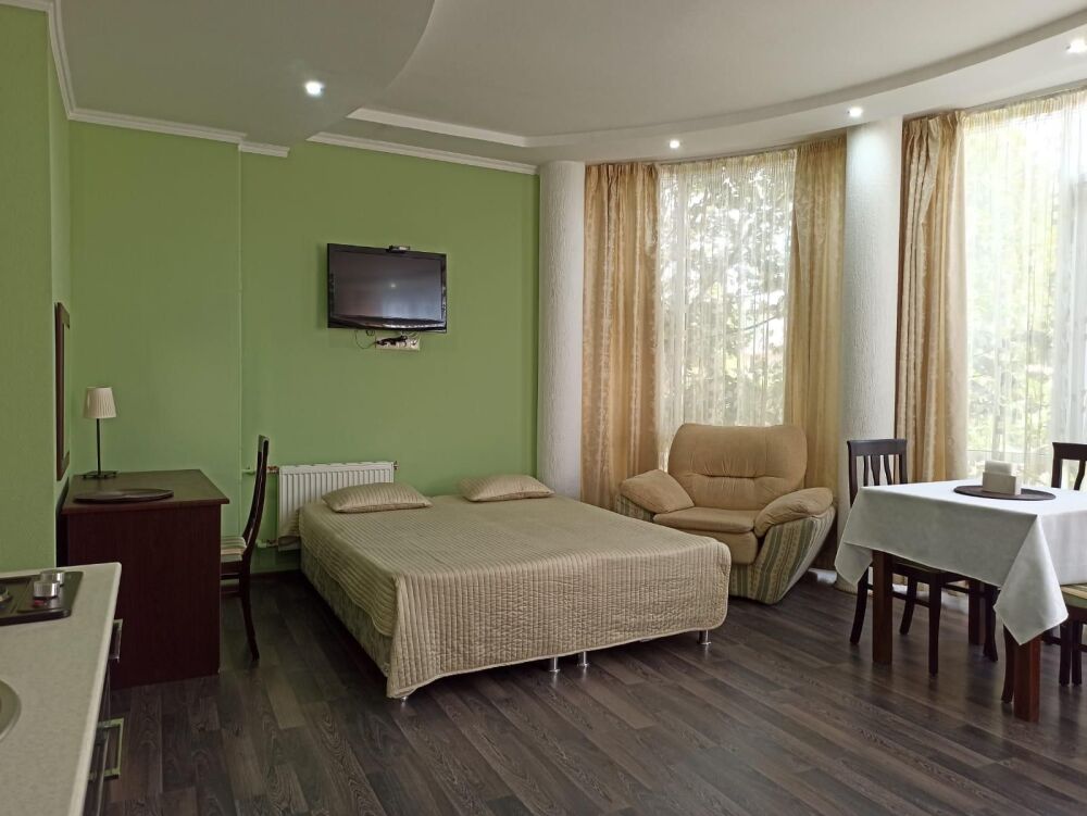 Апарт-отель находится на первой линии в 5 минутах ходьбы от Черноморского пляжа и набережной знаменитого курортного местечка Ольгинка. Территория и оснащение апартаментов, как и расположение отеля, несомненно радуют отдыхающих и делают отдых незабываемым для наших гостей. На территории отеля есть охраняемая парковка, детская площадка, терраса и зона барбекю.