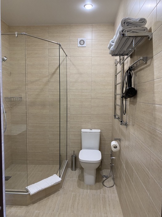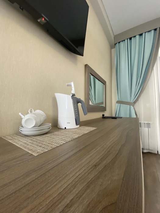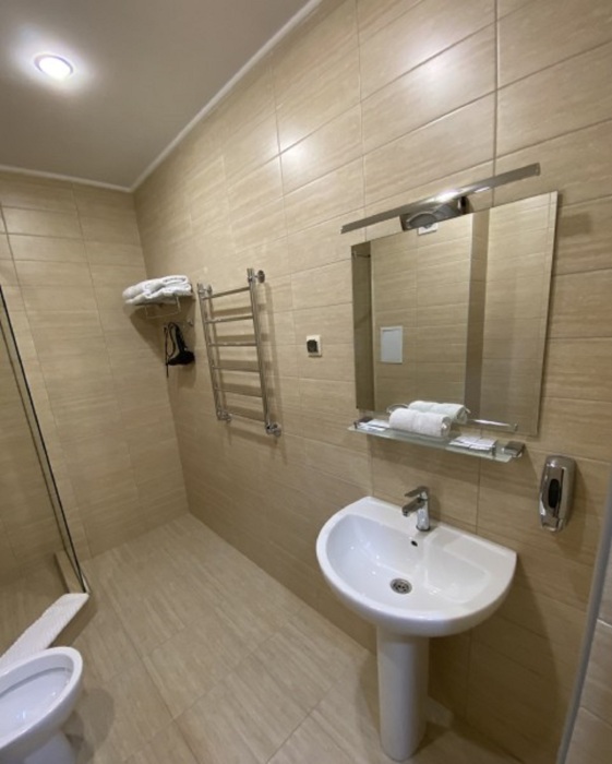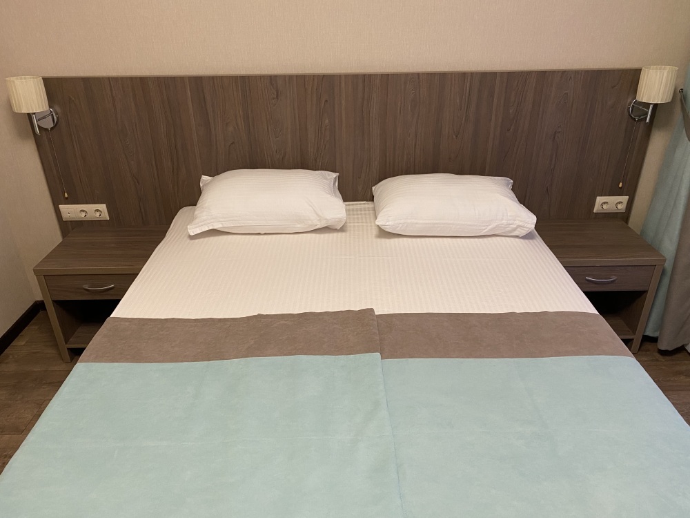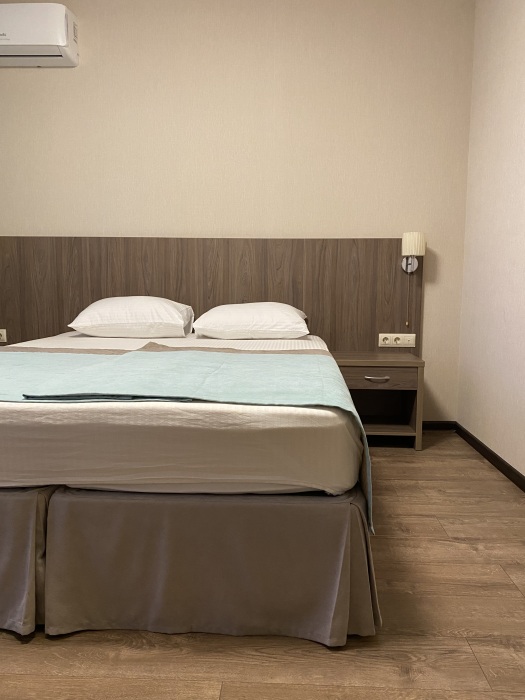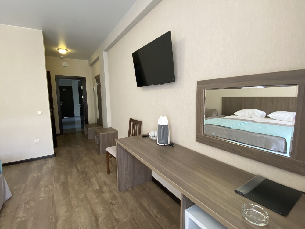 Номера оснащены всеми необходимыми удобствами для комфорта отдыхающих: душ, кондиционер, холодильник, Wi-Fi на каждом этаже, телевизор, удобные ортопедические матрасы.