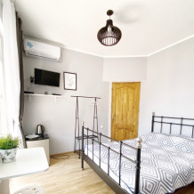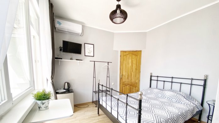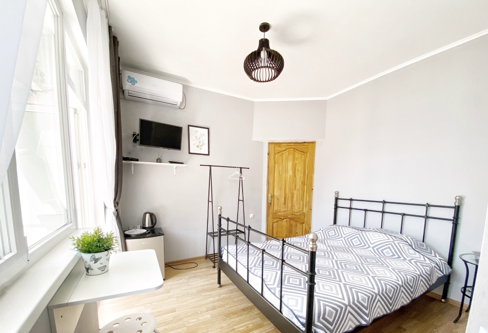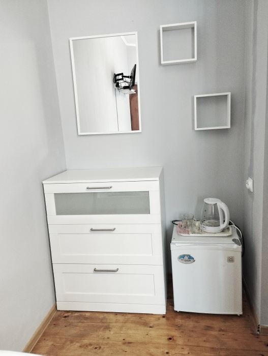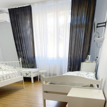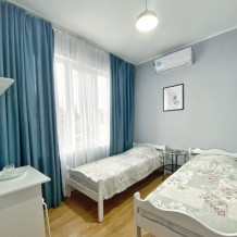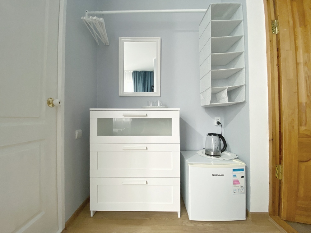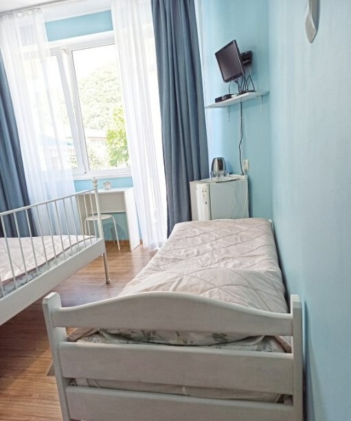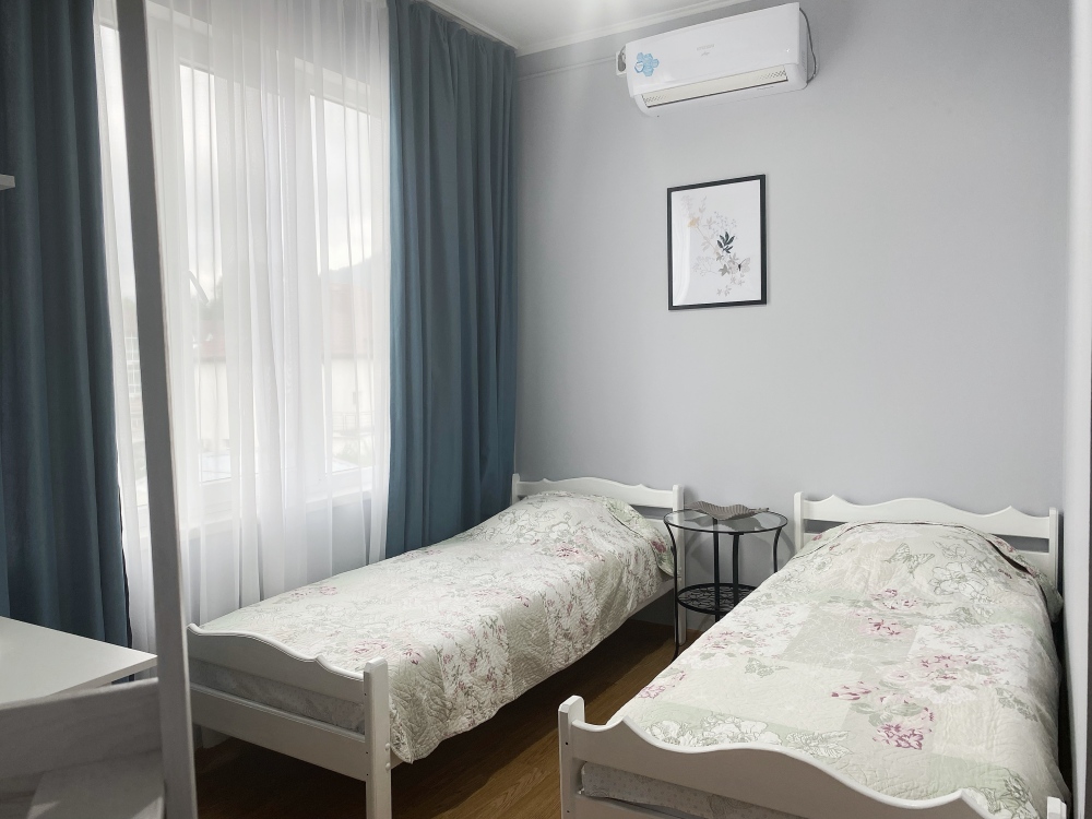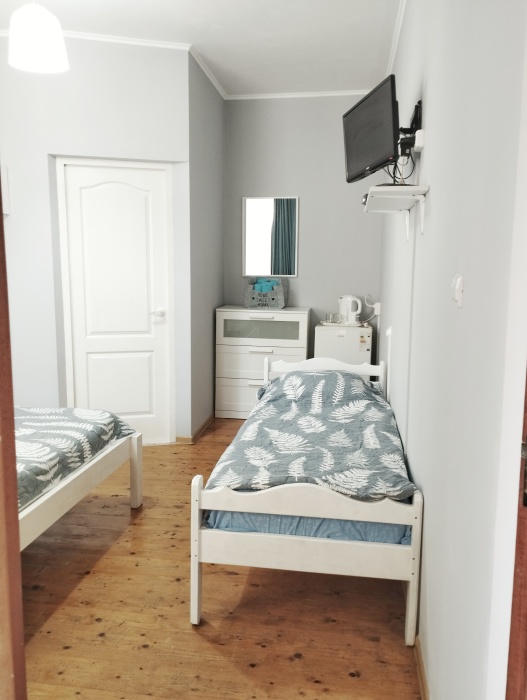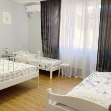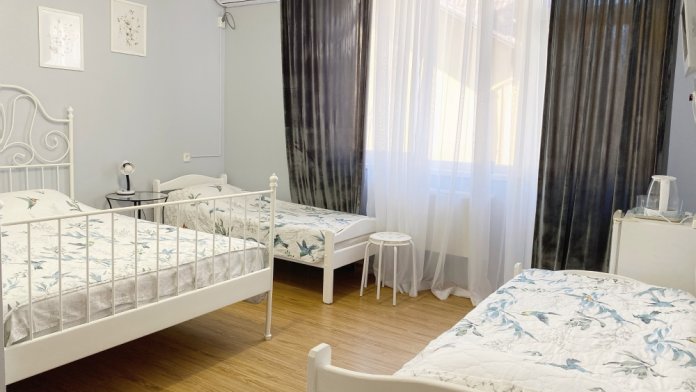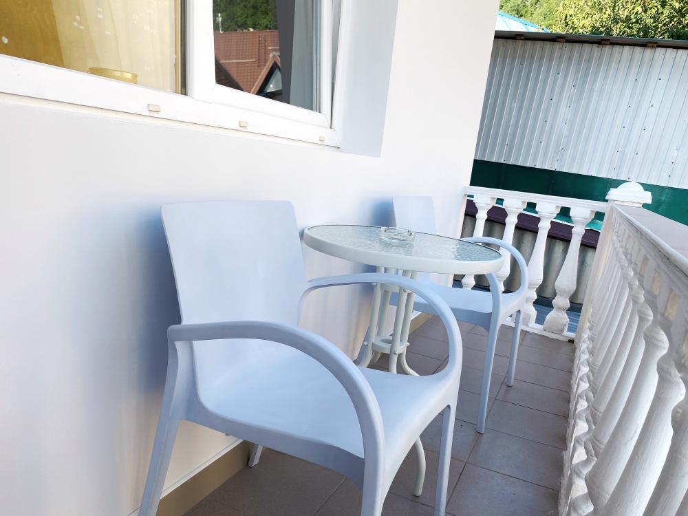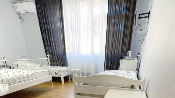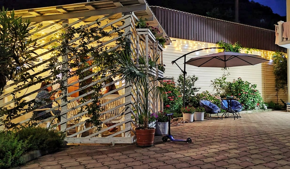 Территория гостевого дома огороженная, есть парковка для автомобилей, Wi-Fi, оборудованная всем необходимым общая кухня, где каждый желающий может хранить свои продукты и что-нибудь себе приготовить. Для проживания гостям предлагаются номера разной вместимости, со всем необходимым для комфортного отдыха.